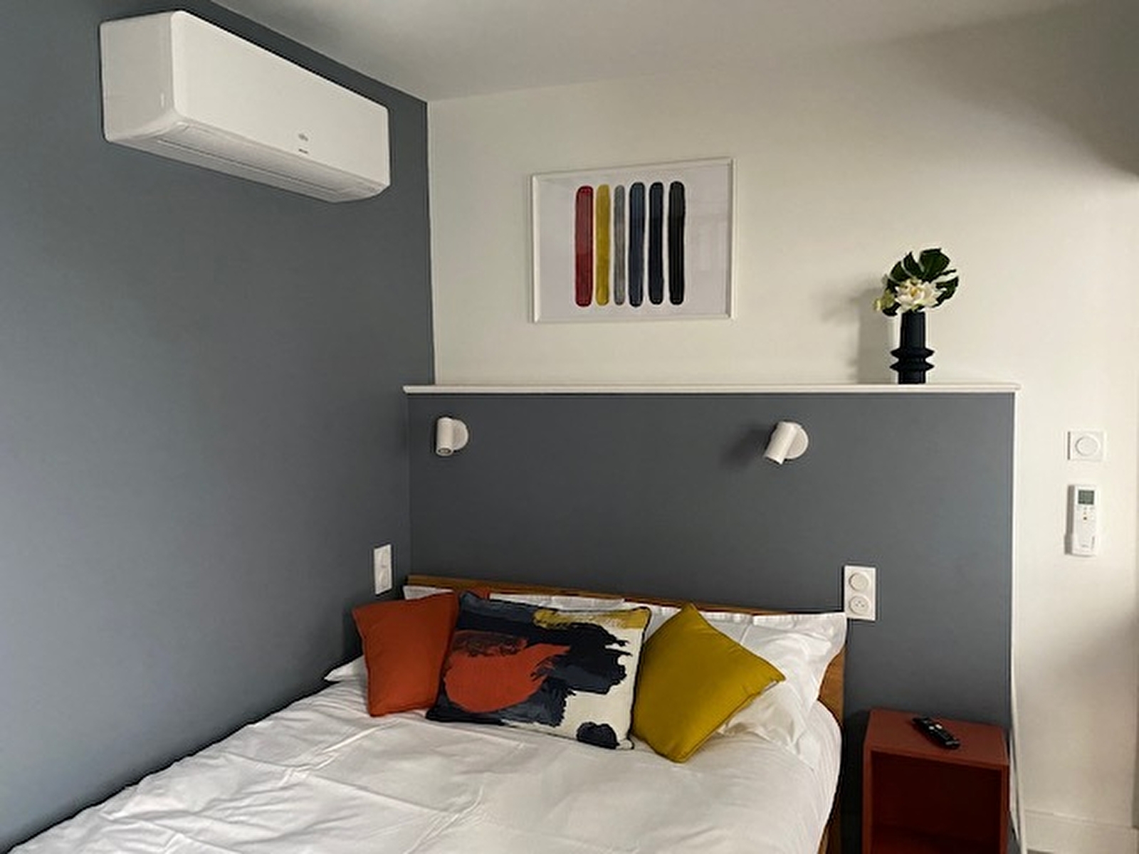 Si vous voyagez seul ou à deux, nous vous proposons un studio tout confort. Cet appartement de vacances est doté d’un petit espace d’entrée avec dressing, d’un lit double très confortable, d’un téléviseur LED, d’une climatisation réversible.