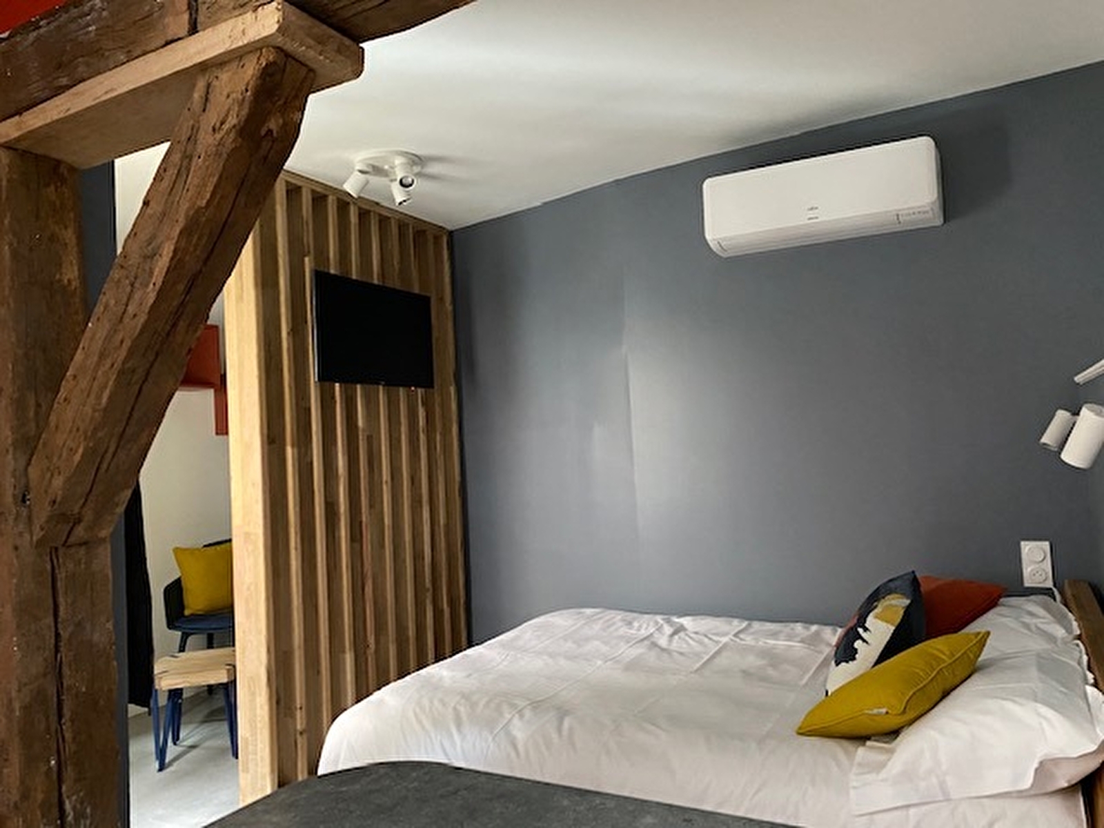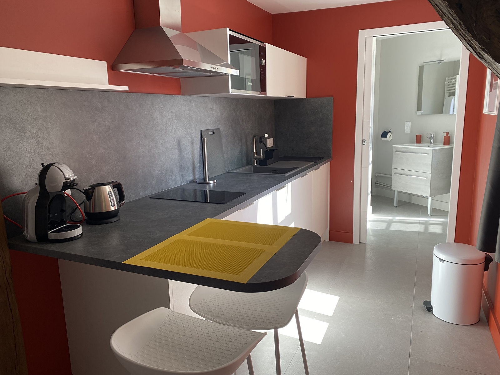 Le studio est équipé d’une cuisine aménagée avec lave-vaisselle, micro-ondes-grill, plaques à induction, hotte et réfrigérateur. Vous aurez à votre disposition toute la vaisselle nécessaire ainsi qu’une machine à café Dolce Gusto, une bouilloire et un grille-pain. Il compte également une salle de douche avec wc, sèche-serviettes et un sèche-cheveux. Décoré avec goût, il permet de passer des vacances ou des week-ends agréables au cœur même de la ville d’Autun.