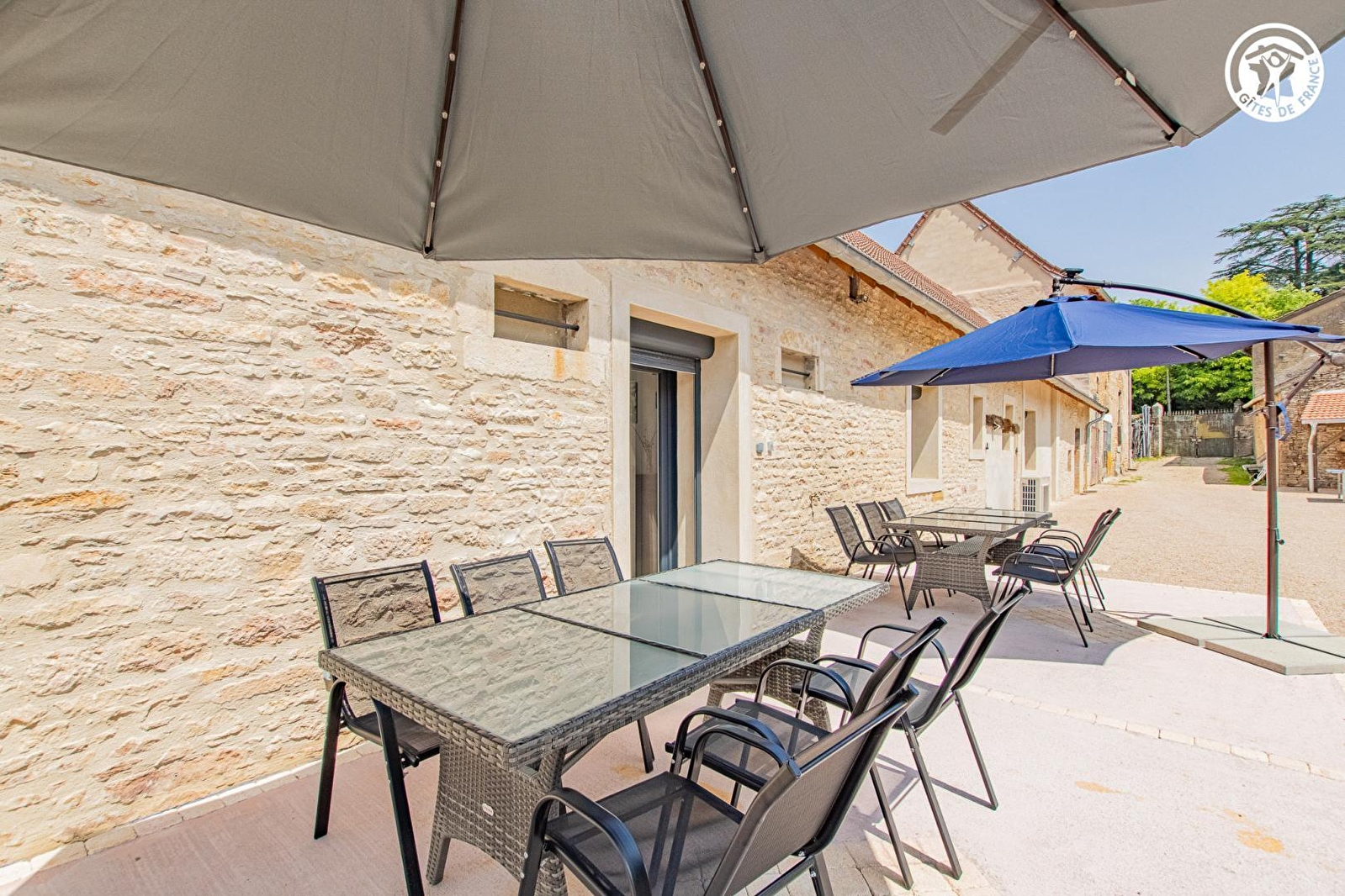 Anne & Jean-Marc vous ouvrent les portes d’un authentique & très insolite ancien "garage automobile rural" soigneusement revisité, voisinant la cave coopérative locale au cœur d’un paisible petit hameau typique chargé d’histoire que domine une majestueuse maison forte du XVIe, à deux pas des vignes & d’un rare chêne tricentenaire classé, véritable emblème du village. Tranquillité en pleine douce campagne tournugeoise vallonnée, protégée en ZNIEFF pour ses richesses faunistiques & floristiques (accolé à une vaste "Zone Natura 2000"), apaisant écrin préservé mixant viticulture, agriculture & pleine nature, blotti au creux d'un plateau de vignobles & bucoliques prairies bocagères, cerclé de collines boisées & profondes forêts sauvages (offrant de splendides vues panoramiques jusqu’au Mont Blanc). Spacieux gîte de grand confort. Exceptionnelle pièce de vie de 65m² où trône un baby-foot. Chaleureux cachet campagnard aux accents contemporain parsemé de divers "clins d’œil déco" à l’âme automobile des lieux. Ambiance "pop" & colorée côté chambres, toutes thématisées par de grands posters muraux en hommage à la Bourgogne. Beaucoup de charme. Ultra cosy & douillet. Belle propriété comprenant une grande cour, un terrain de pétanque, une table de ping-pong (mölkky & fléchettes), un agréable intimiste jardinet engazonné, ainsi que de larges terrasses (dont une abritée sous un appentis).