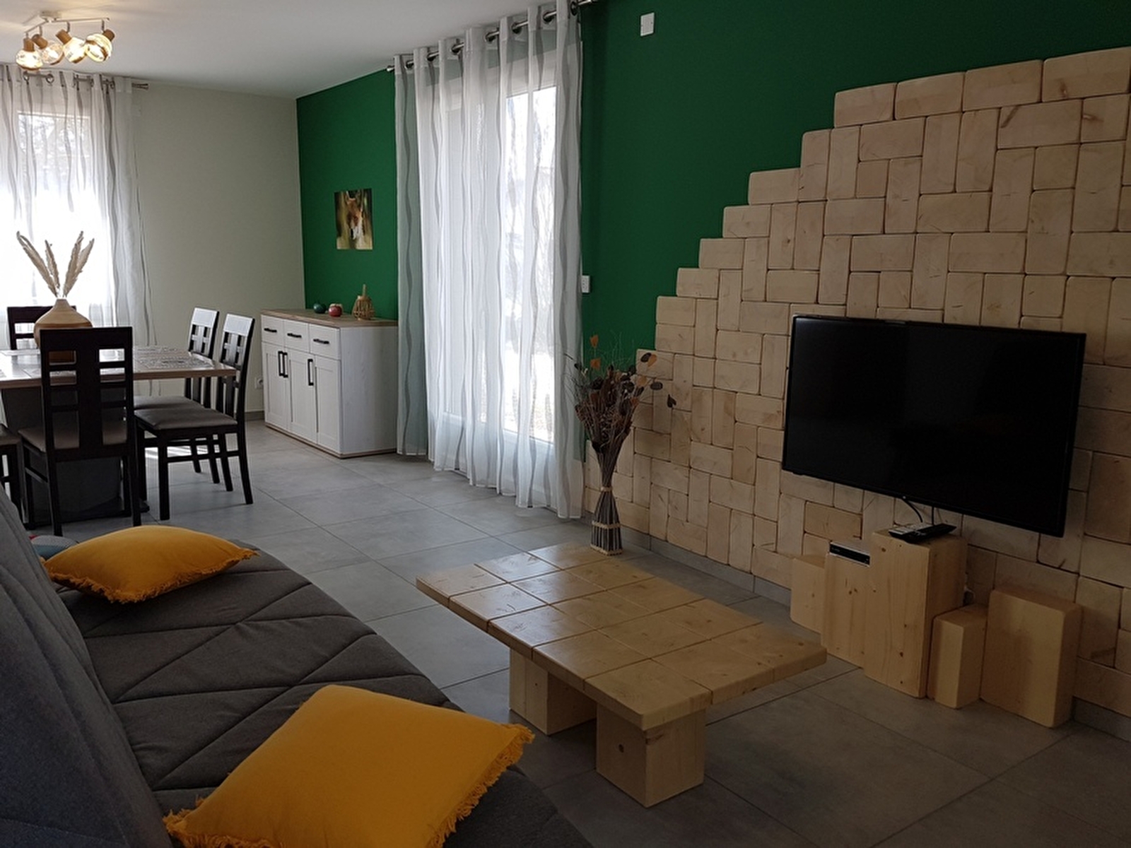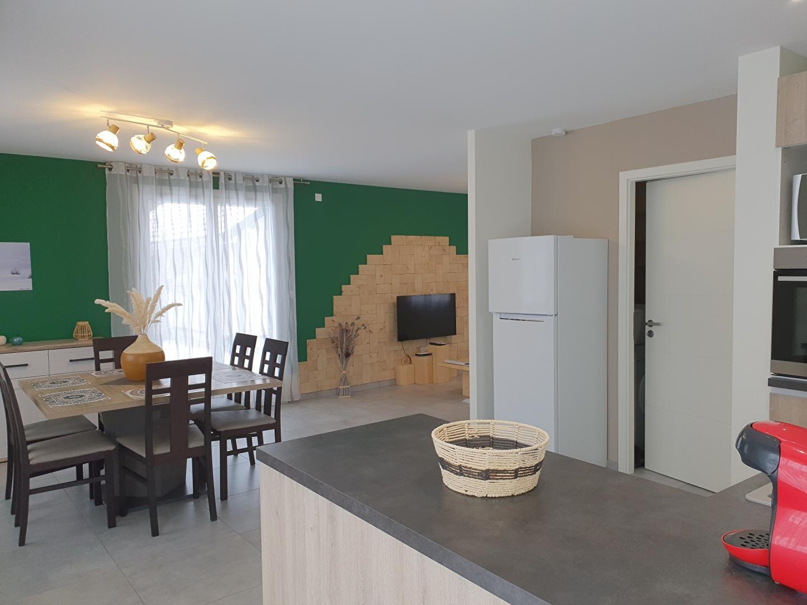 Cette maison neuve à ossature bois située au calme dans une impasse se compose au rez-de-chaussée d'une pièce à vivre avec cuisine intégrée toute équipée, d'un salon avec TV, d'une salle d'eau avec douche à l'italienne, d'une buanderie et d'un WC indépendant. A l'étage, se trouvent 3 chambres, 2 aménagées avec un lit en 140, une avec 2 lits simples et un espace dressing. Côté extérieur, vous pourrez profiter d'une terrasse aménagée avec salon de jardin, barbecue et transats. Pour votre plus grand confort, les lits seront faits à votre arrivée. Un local est mis à votre disposition pour entreposer du matériel (skis, vélos ou autres) Note : chauffage au sol basse température A votre disposition un sauna, voir directement avec les propriétaires sur place.