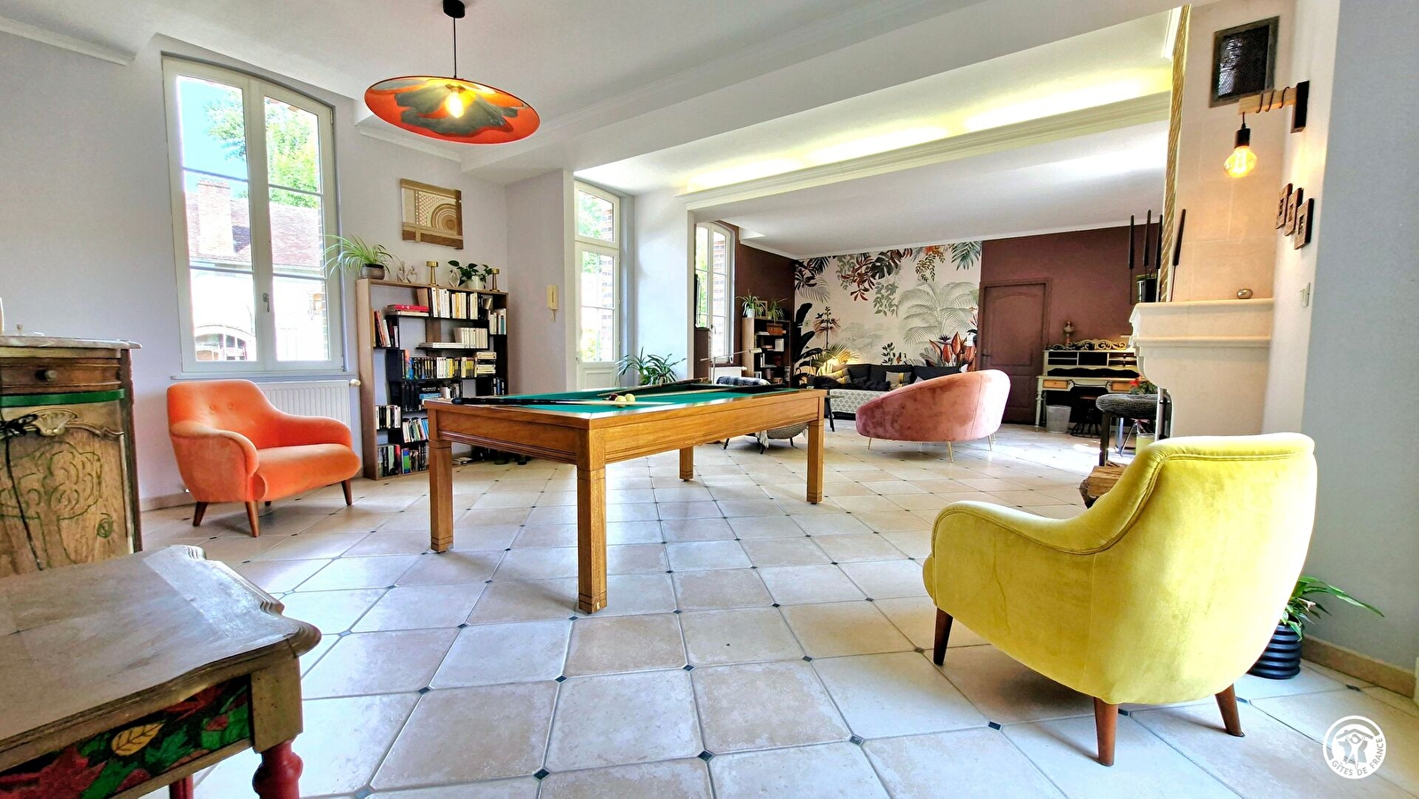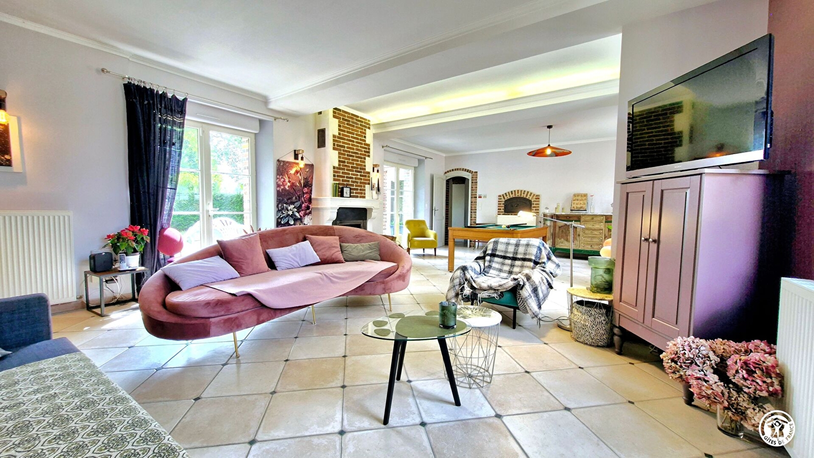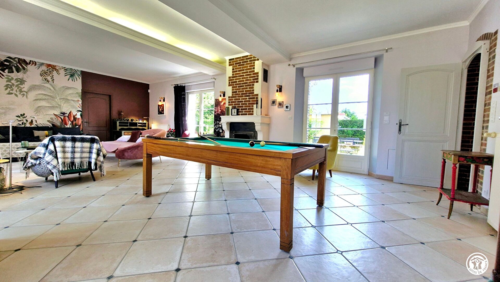 Au rez-de-chaussée, vous entrez par la cuisine du gîte, où vous prendrez vos repas. Le grand salon dispose d’une télévision, d’une bibliothèque et d’un billard français. Une première chambre est équipée d’un lit 160x200 pouvant être séparé en deux lits 80x200, avec sa salle d’eau de grande dimension. Un WC indépendant est également accessible à ce niveau. Une seconde chambre, avec accès direct au jardin, dispose d’un lit 180x200 (pouvant être séparé en deux lits 90x200) et d’une salle d’eau privative (avec WC et douche de grande dimension).