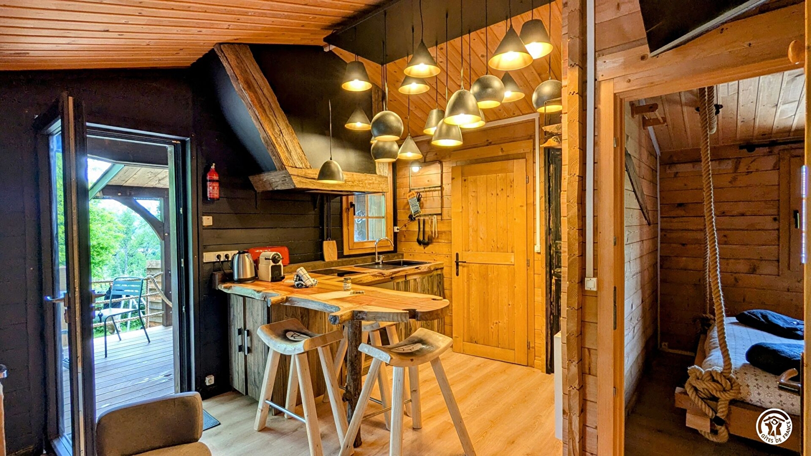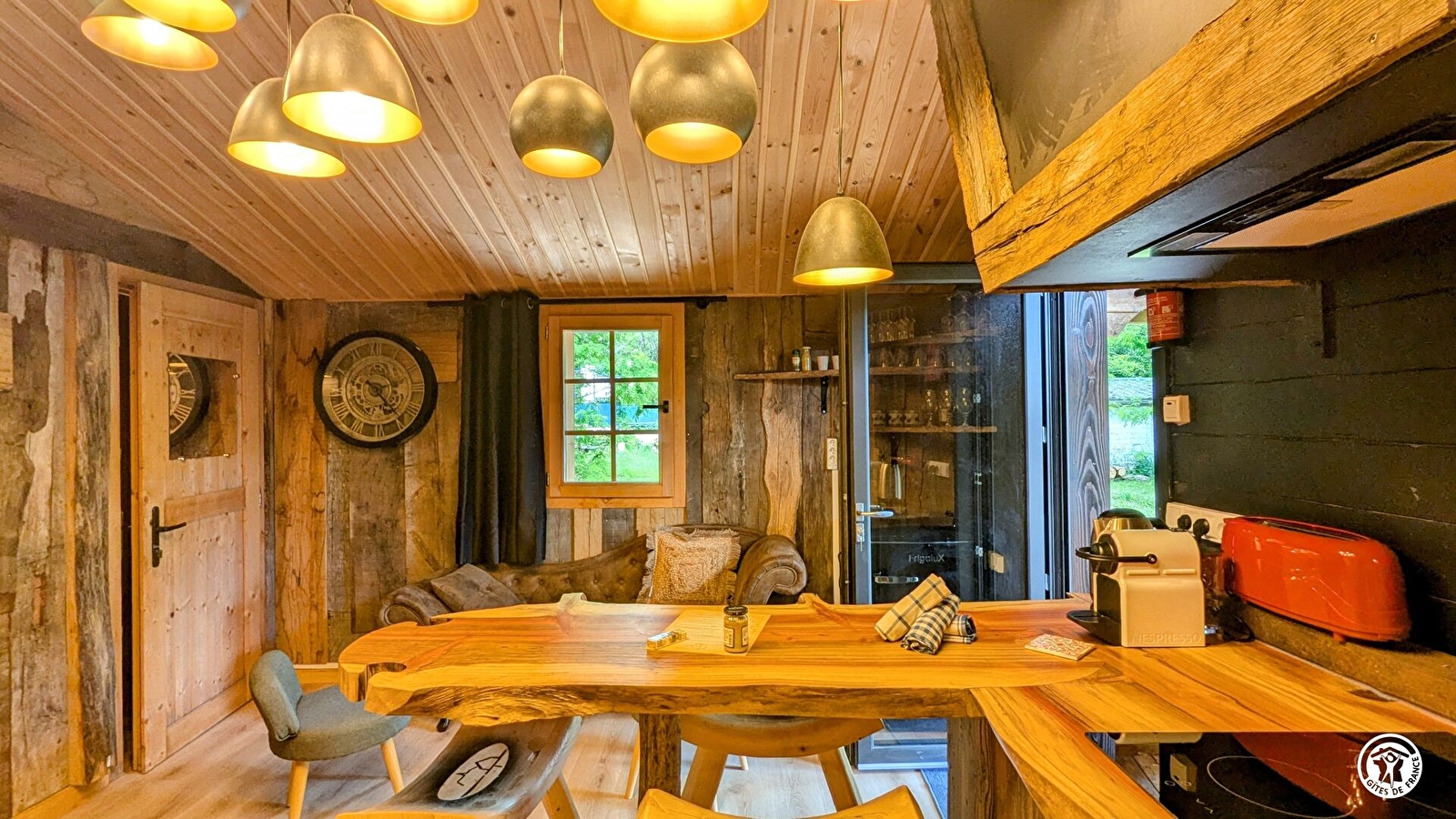 Dans un grand domaine comprenant 3 gîtes, sans aucun vis-à-vis, le chalet "l'Interlude" vous charmera par son côté atypique et reposant. Petite cuisine équipée ouverte sur salon, avec TV et wifi. 1 chambre avec 1 lit de 140 cm, 1 coin nuit avec 2 lits superposés, idéal pour 1 ou 2 enfants, 1 salle d'eau avec cabine de douche et 1 WC indépendant. Terrasse avec SPA 3 places, avec vue sur l'Ouche. Salon de jardin, chiliennes. Terrain partiellement clos. Les enfants sont sous la responsabilité des parents. Parking privatif. Lit bébé et chaise haute sur demande.