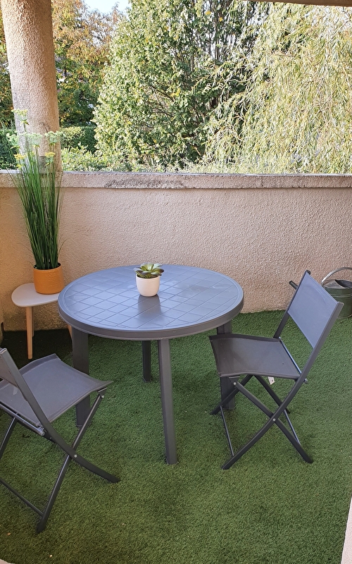 Proche des Thermes. T2 entièrement rénové à neuf au calme, cuisine équipée ouverte sur le salon, chambre indépendante lit 160x200, grand balcon avec meubles de jardin. Parking. Pour plus d'informations, contactez moi !