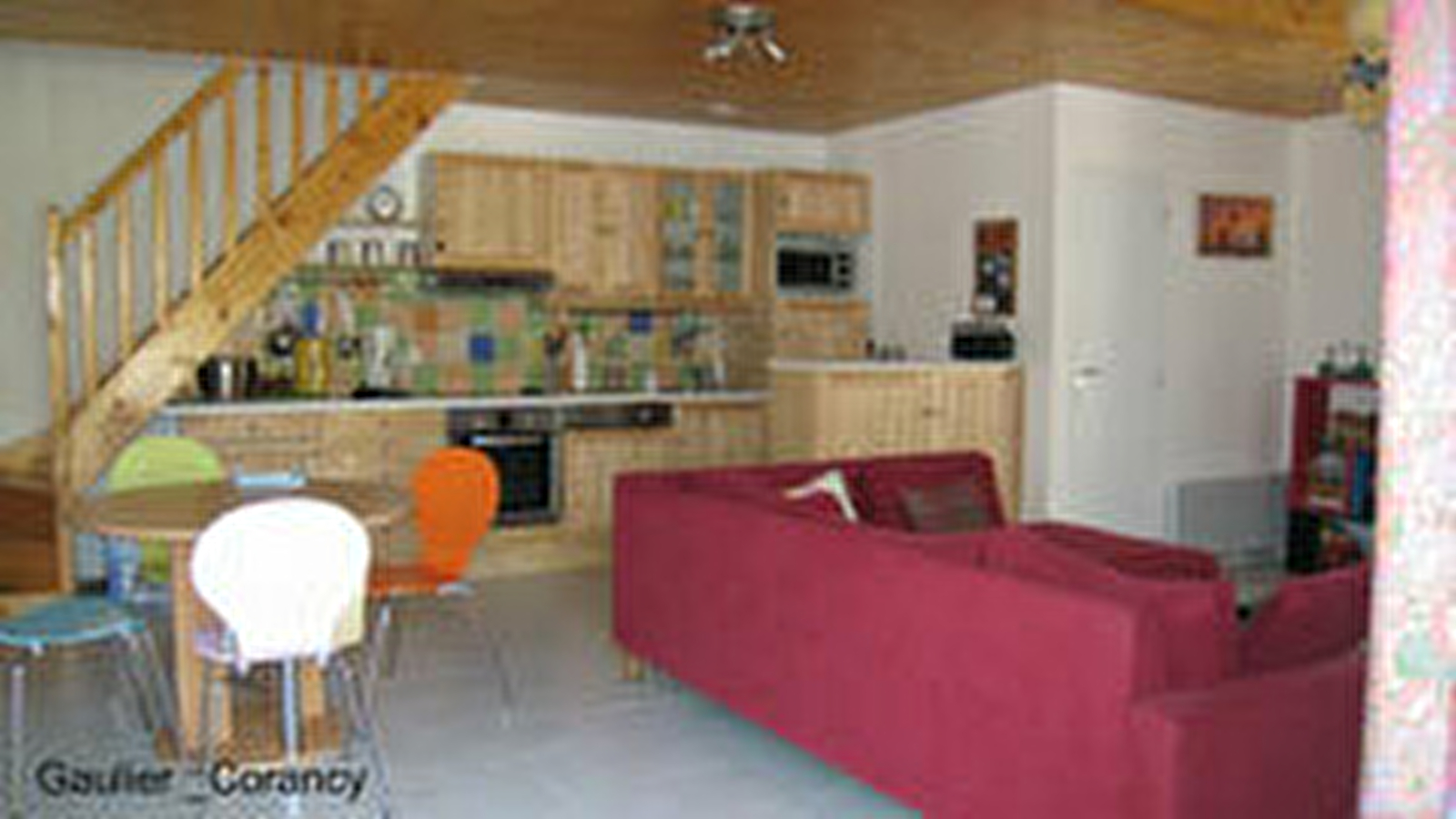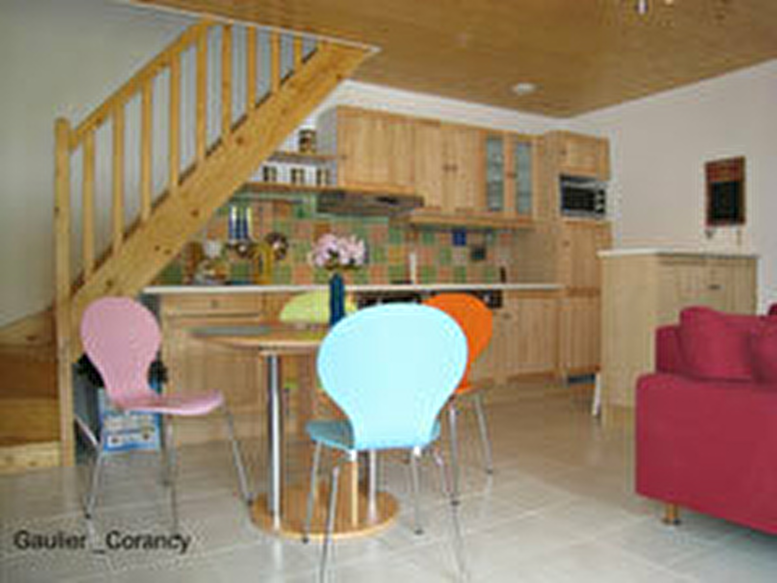 - Une pièce à vivre : cuisine-salle à manger ouvrant sur le salon avec cheminée, très bien équipé de mobilier et électroménagers neufs. Les enfants sont très sensibles à l'aspect coloré du lieu.