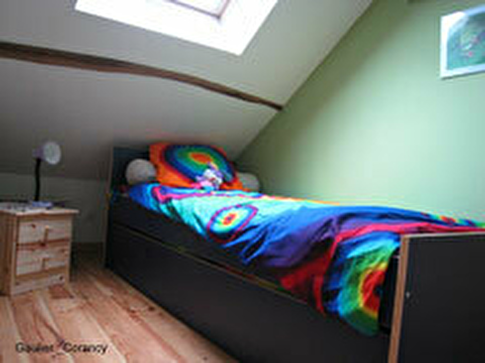 - Au premier 2 petites chambres en mezzanine : l'une avec un lit double l'autre avec un lit gigogne (2 lits de 90 qui s'emboitent). La chambre est occultée par un rideau approprié qui ne laisse pas passer la lumière ni le bruit du R-de-C