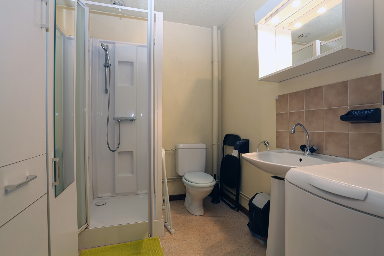 - une salle d'eau avec cabine de douche, lavabo, wc, un petit meuble, machine à laver le linge et un cumulus. Possibilité location garage. Possibilité location linge et draps. Parking proche.