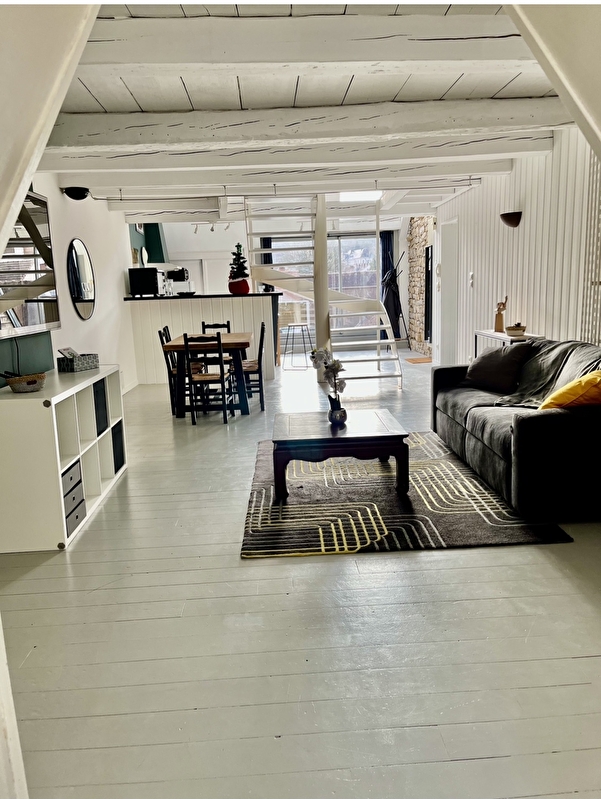 Cuisine équipée, grand séjour lumineux avec canapé convertible en lit 140.