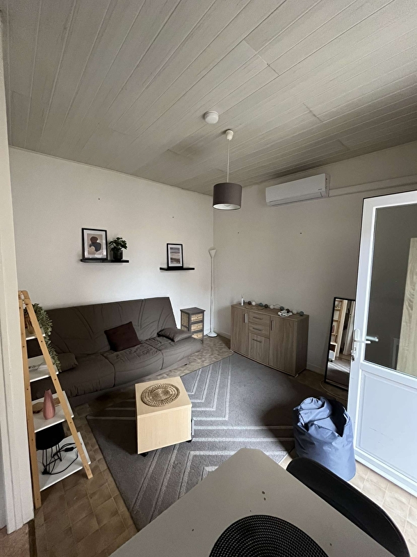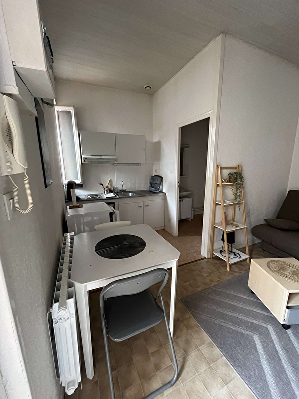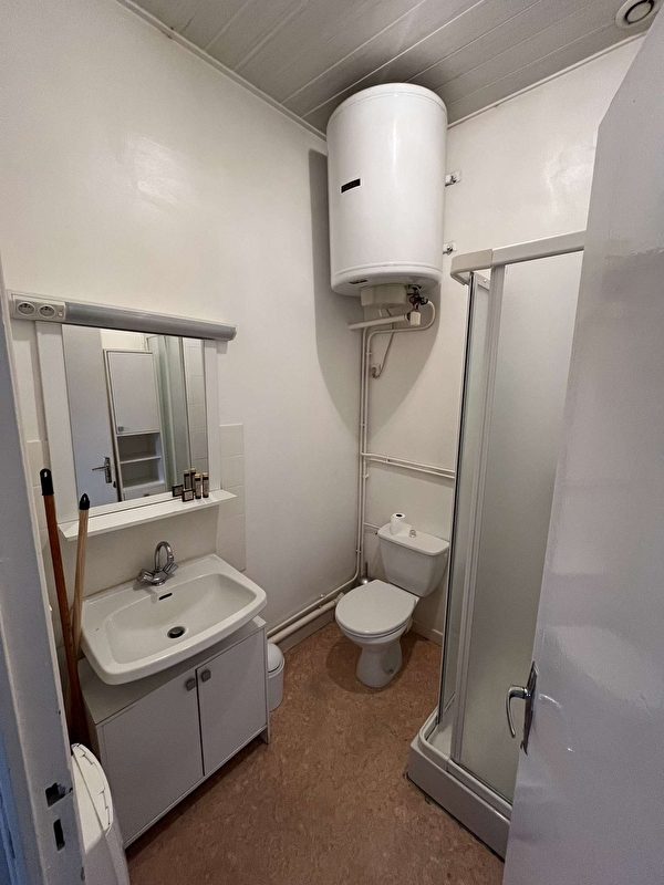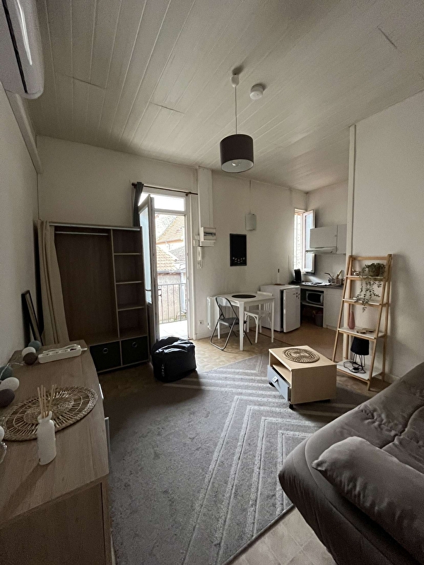 Studio en centre ville de 20 m² à l’étage. Une grande pièce avec coin cuisine équipée, un BZ 140, Salle-de-bain : douche + lavabo + WC. Climatisation réversible. Possibilité de machine à laver sur demande et lit bébé.