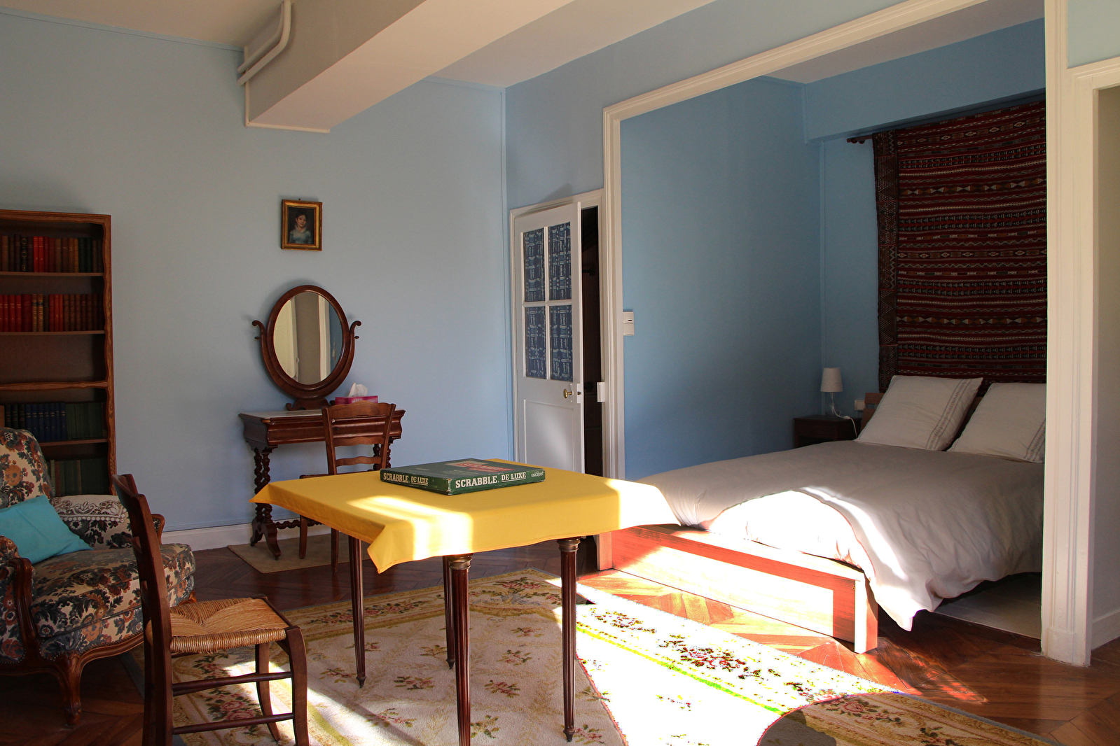 L'appartement indépendant comprend deux grandes chambres d'environ 30 m2 avec salle de bain, cabinet de toilette et W.C. indépendant, une salle de séjour avec balcon, une cuisine équipée. Un garage à vélo est disponible.