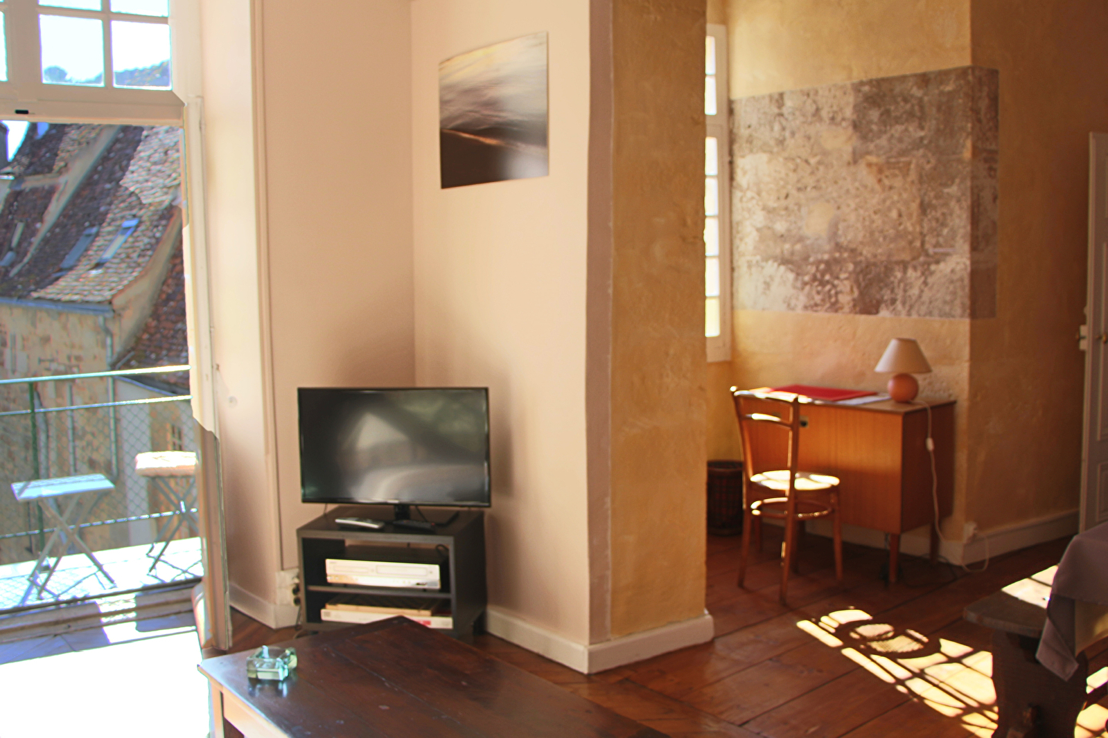 Situé au coeur de la ville médiévale, en zone piétonne, ce grand appartement de charme, de 100 m2, occupe un étage de l'ancien logis des gouverneurs, monument historique.