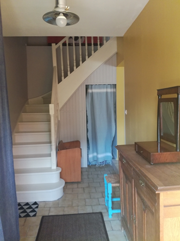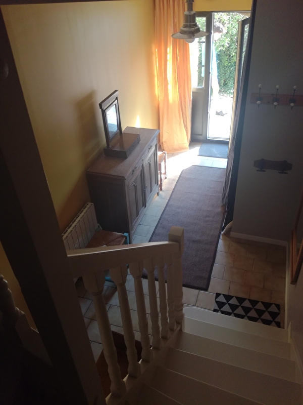 A l'étage : 1 Chambre double (lit 160 neuf et bureau), 1 autre chambre avec lit double (160) + 2 lits gigognes + bureau, SDB, WC.