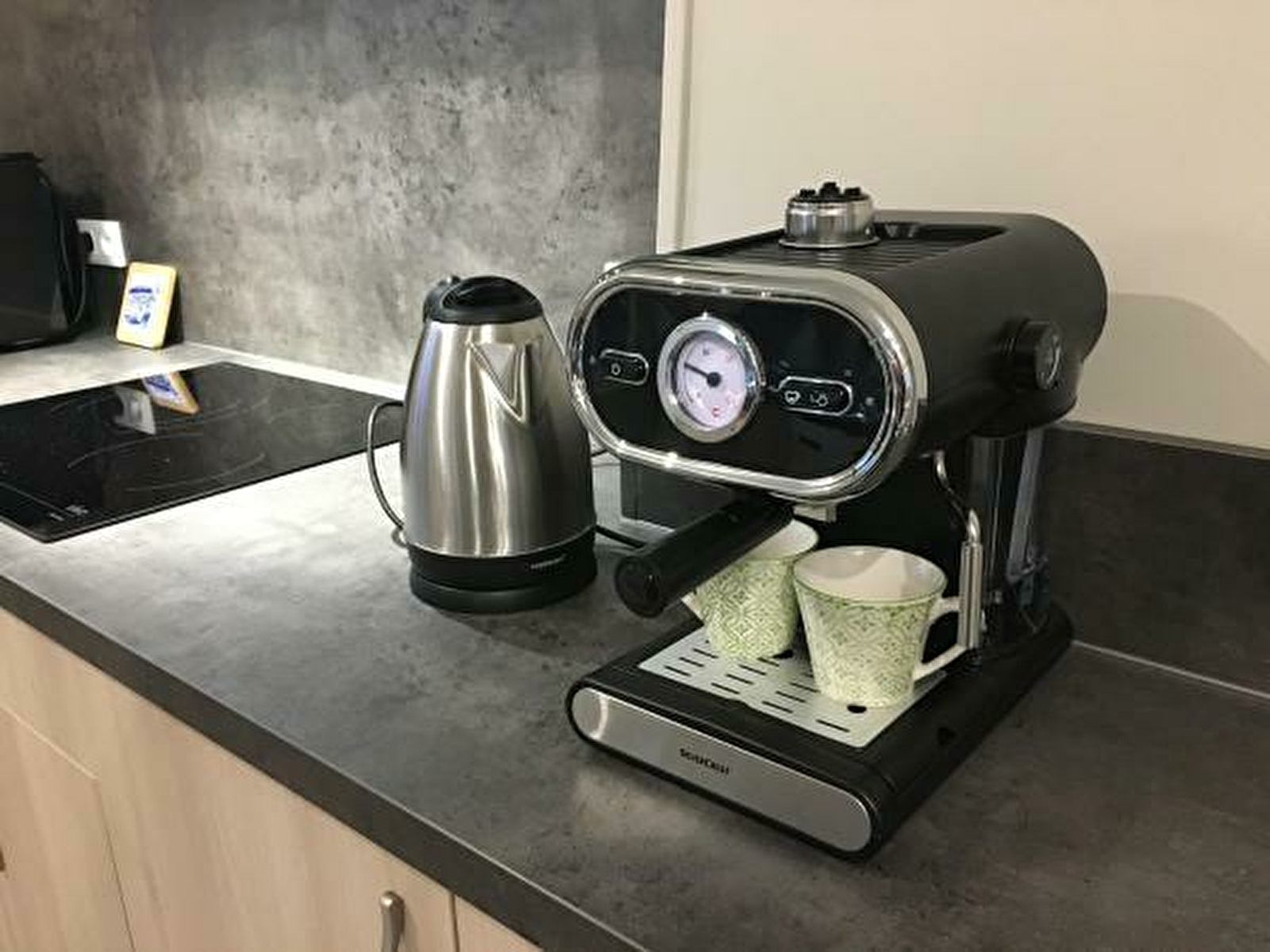 Enfin, pour bien démarrer la journée, vous dégusterez votre café ou thé dans la cuisine parfaitement équipée où vous apprécierez la vue sur les toits de Cluny.