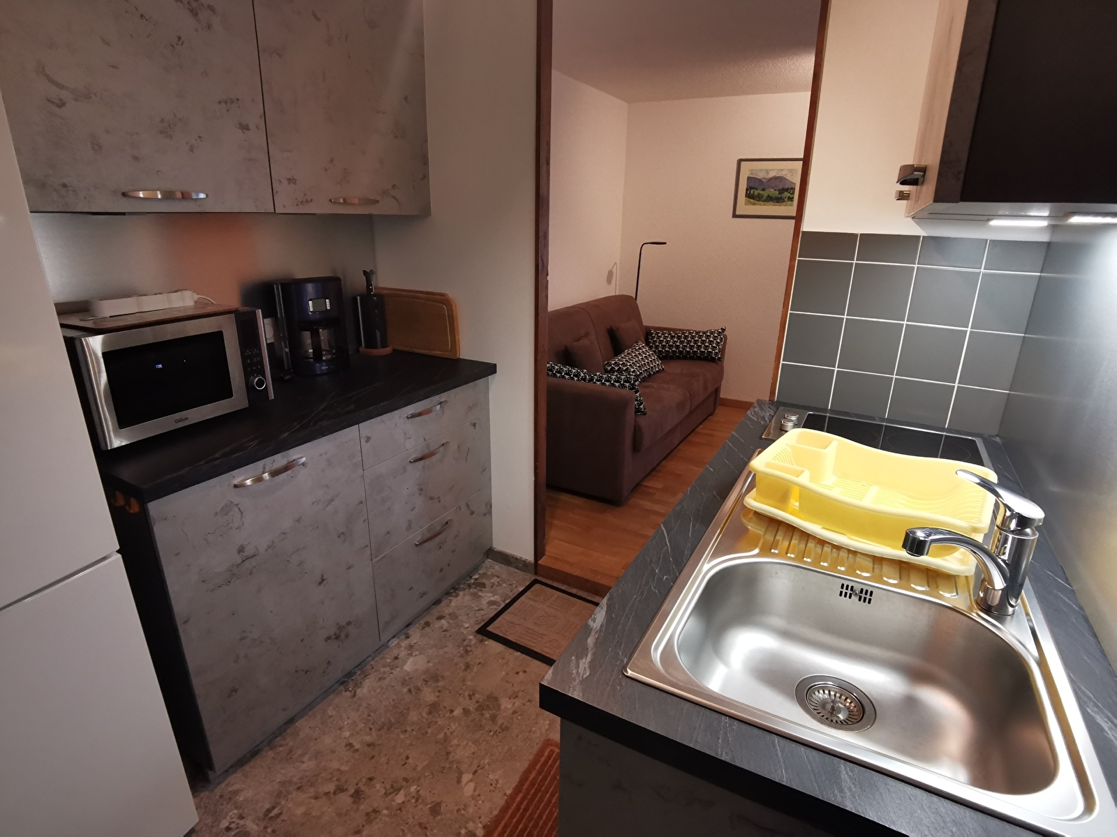Situé dans la résidence "L’Orée Des Pistes", le studio de 24m² au rez-de-chaussée est composé d'une pièce principale avec coin cuisine/repas et canapé bed express de 140cm. Un coin nuit séparé par un rideau avec un lit de 140cm. Salle de bain et WC indépendant. Un accès extérieur sur petit rez-de-jardin non clôturé complète le tout. Place de stationnement privé en parking souterrain. Le propriétaire accepte jusqu’à 3 personnes : 2 adultes et 1 enfant.