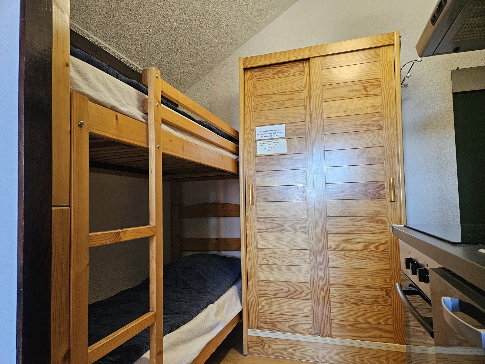 Situé dans la résidence "L’Orée Des Pistes", le studio de 30m² au deuxième étage est composé d'une entrée avec lits superposés de 90cm et d’une pièce principale avec coin cuisine/repas et canapé lit BZ. Un coin nuit séparé par un rideau avec un lit de 140cm. Salle de bain et WC indépendant. Un accès extérieur sur petit balcon complète le tout. Place de stationnement privé en parking souterrain.
