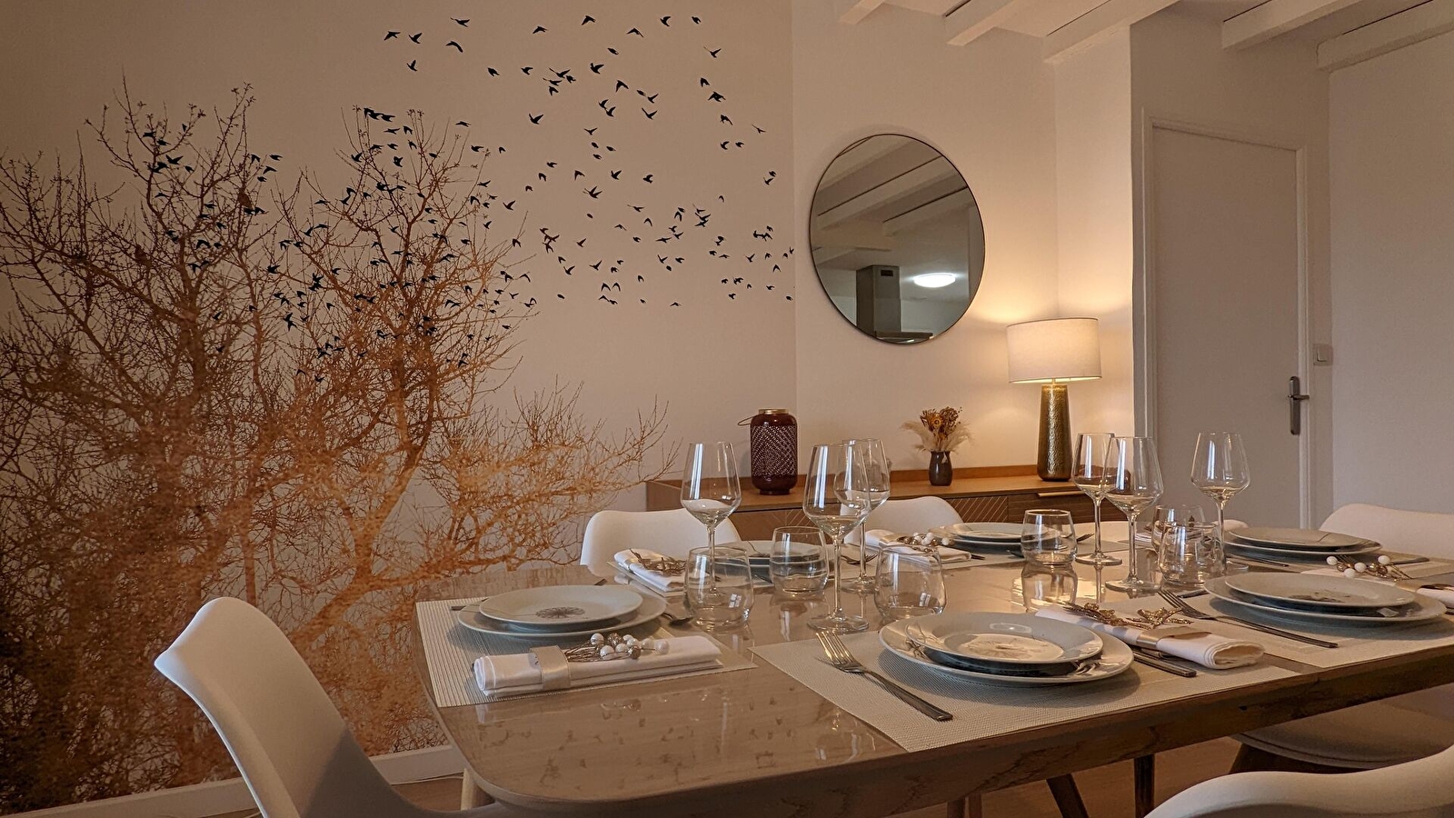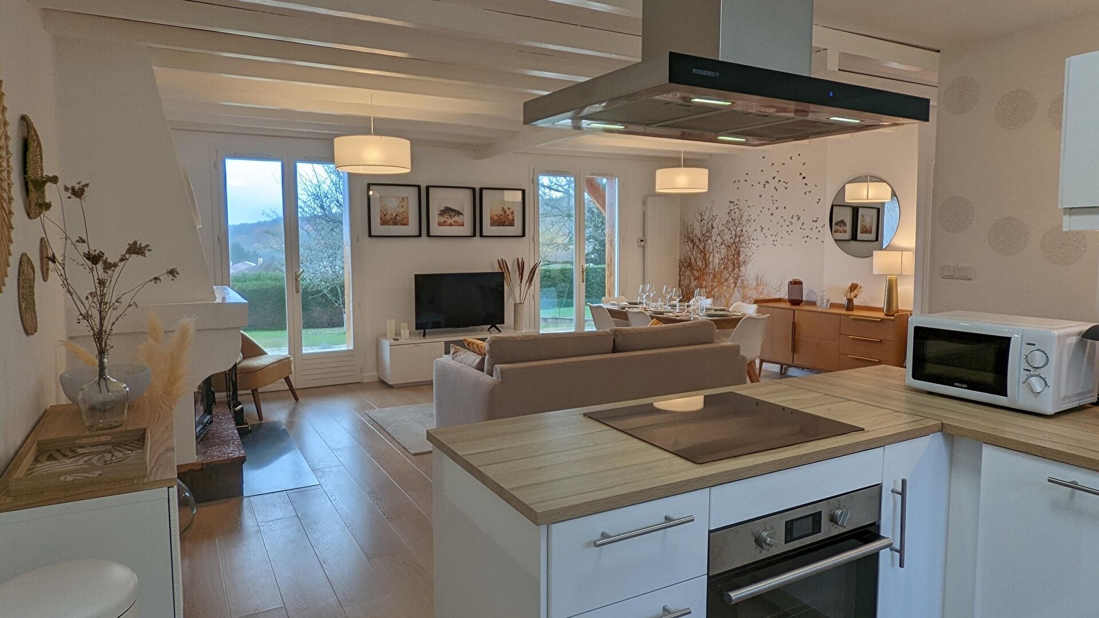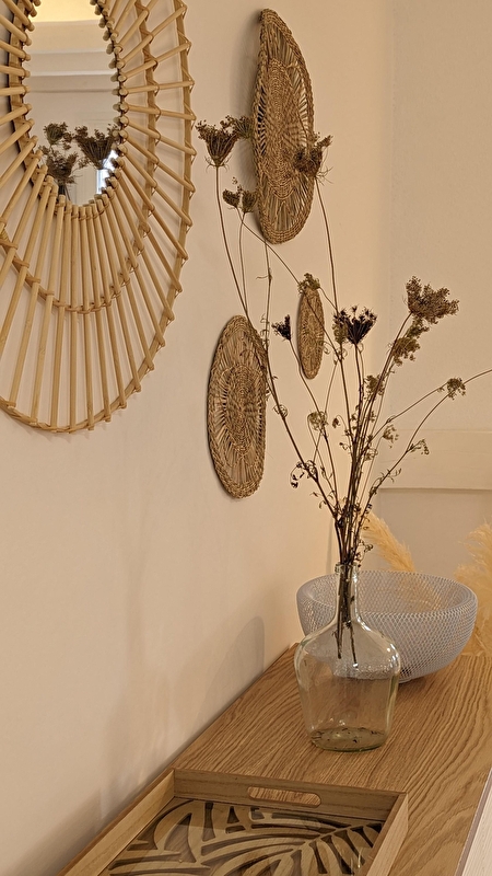 Idéal pour 4 personnes, ce gîte, de plain-pied, à la décoration à la fois sobre et chaleureuse, dispose d’une cuisine équipée (micro-ondes, four , lave-vaisselle, machine à café filtre et à dosettes, plaque à induction, grille-pain, bouilloire réfrigérateur et congélateur), ouverte sur le salon tout confort (tv grand écran, wifi, jeux de société, bibliothèque, livres. Cheminée. Accès direct sur terrasse puis jardin clos. Salon de jardin, parasol, plancha. 2 transats. Possibilité de stationner son véhicule dans la propriété. Nombreux commerces dans le bourg.