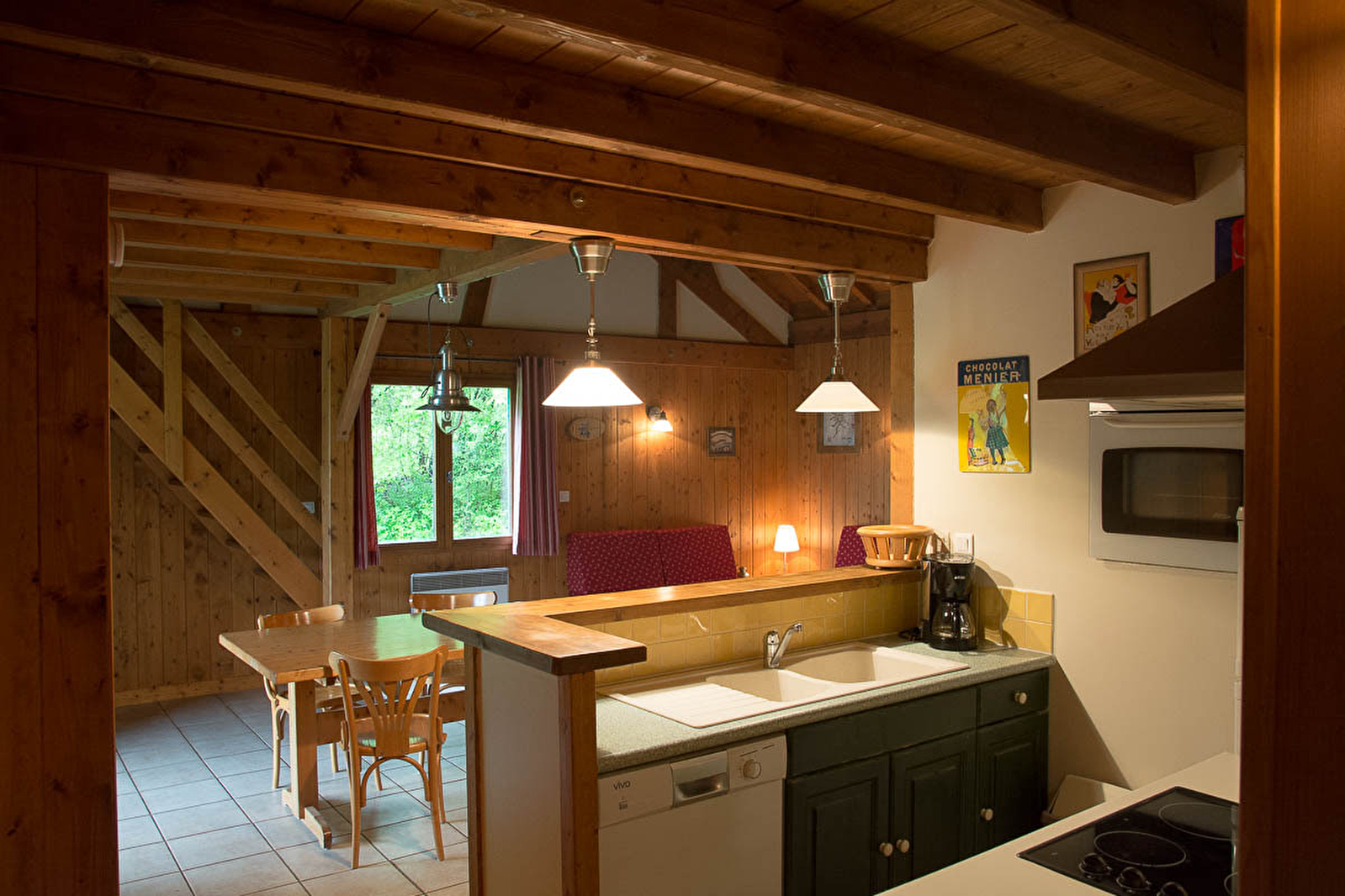 Chalet indépendant situé à proximité des Cascades du Hérisson. Au rez de chaussée : salon - séjour, cuisine, Ch.1 : 1 lit 2 personnes, Ch.2 : 2 lits 1 pers. salle d'eau. A l'étage : une mezzanine avec coin salon. Terrasse couverte avec salon de jardin, barbecue. Terrain non clos. Terrain de pétanque. Accès internet gratuit en wifi. Equipement bébé. Chauffage électrique et bois, charges non comprises. Forfait bois : 30 €/semaine du 15/10 au 15/04. Abri garage attenant. Accueil d'un animal (gratuit).