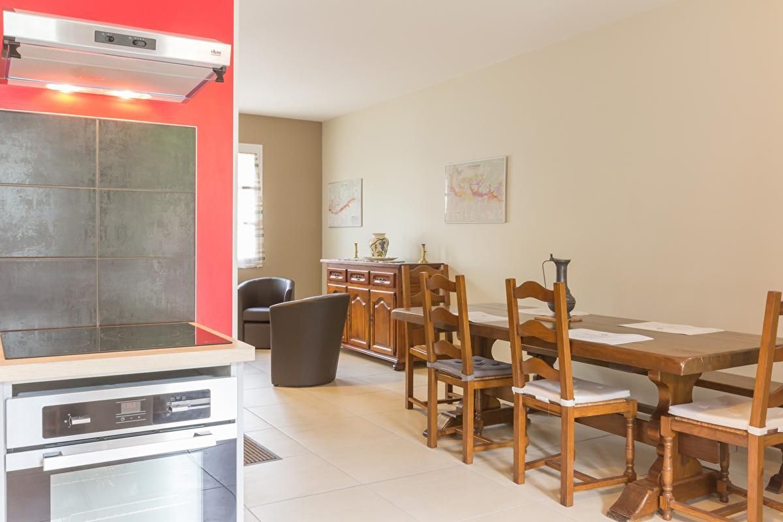 Dans un hameau, maison mitoyenne rénovée chez un vigneron à Pommard. Rez-de-chaussée surélevé : grand séjour lumineux avec cuisine intégrée, salle à manger et salon. WC séparé. A l'étage : 2 chambres (1 lit 160 et 2 lits 90 jumelables), salle d'eau avec WC. Terrasse et espace jardin privatif dans cour commune, avec passage possible du propriétaire. Parking privé sous abri couvert.