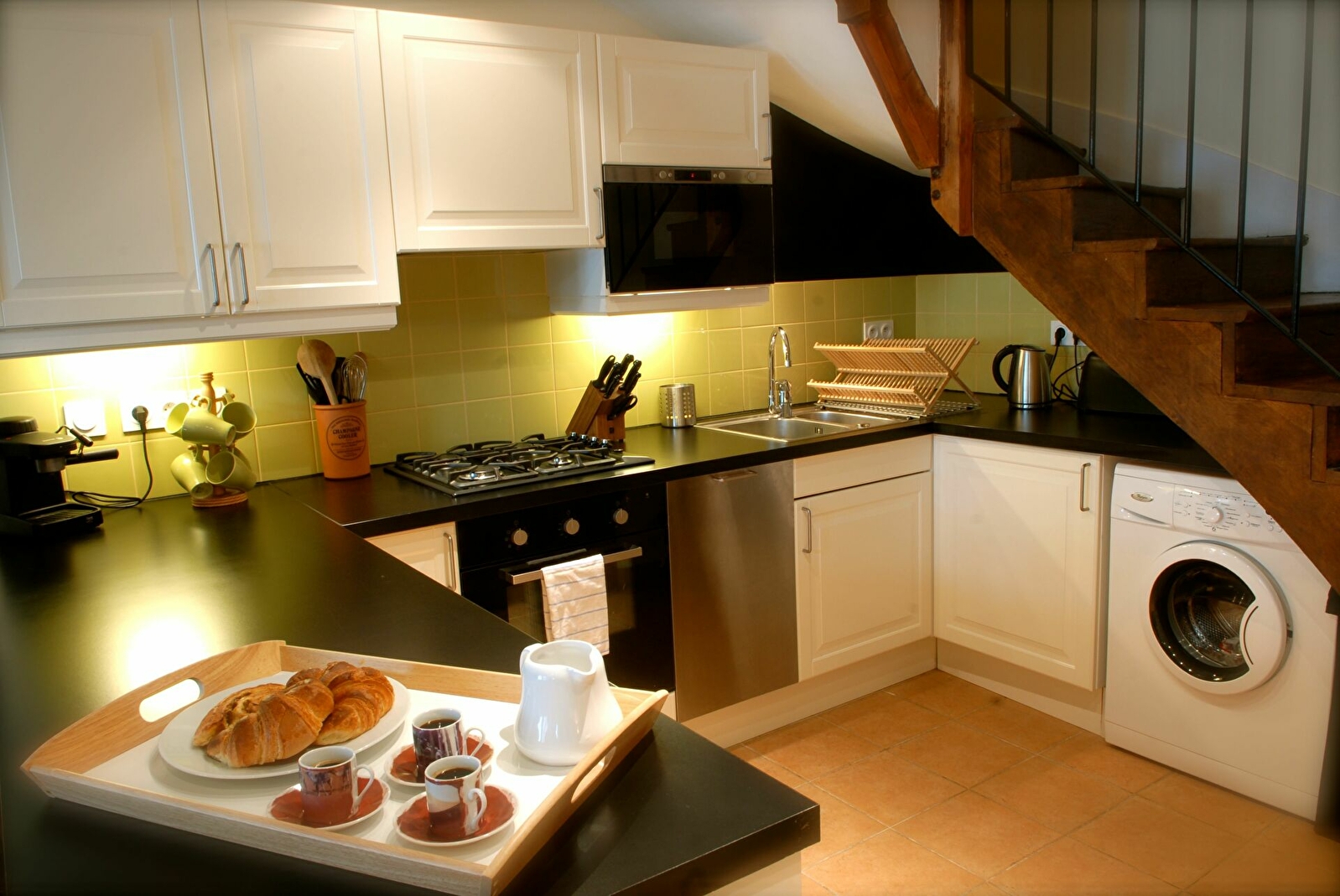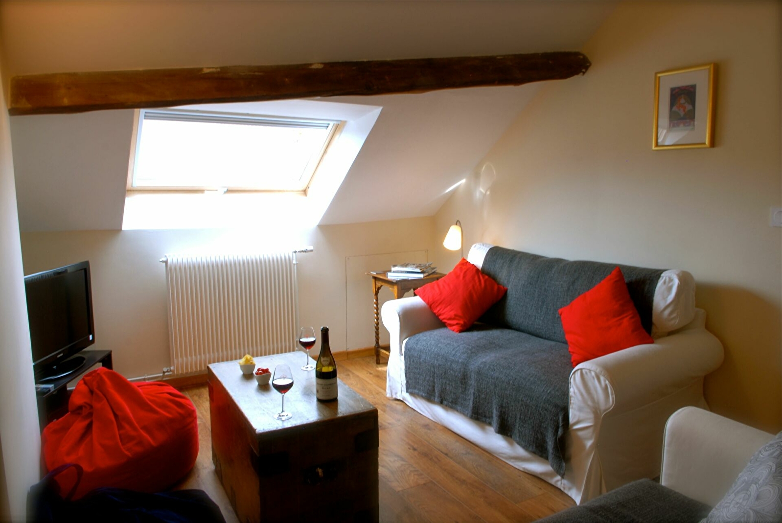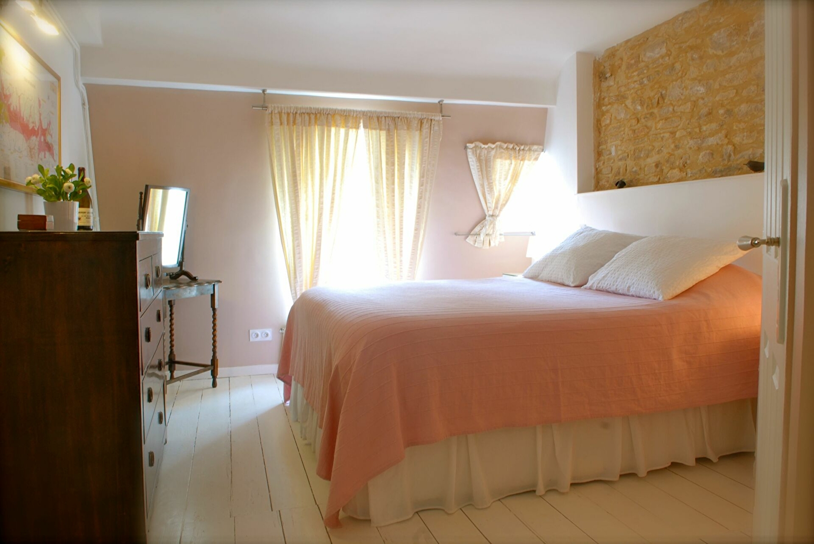 Entièrement rénovée, cette ancienne maison date du 18ème siècle. Cuisine équipée avec lave-vaisselle, lave-linge, frigo, micro-onde et four. La cuisine donne sur une salle à manger avec une table pour 6 personnes. Il y a deux salles de bain avec douche, deux chambres confortables chacune avec un lit double Queen (ou 2 lits simples comme vous préférez). Sous les poutres au dernier étage il y a un salon pour quatre personnes, TV, DVD et Blue Ray. Un des canapés est un clic-clac.