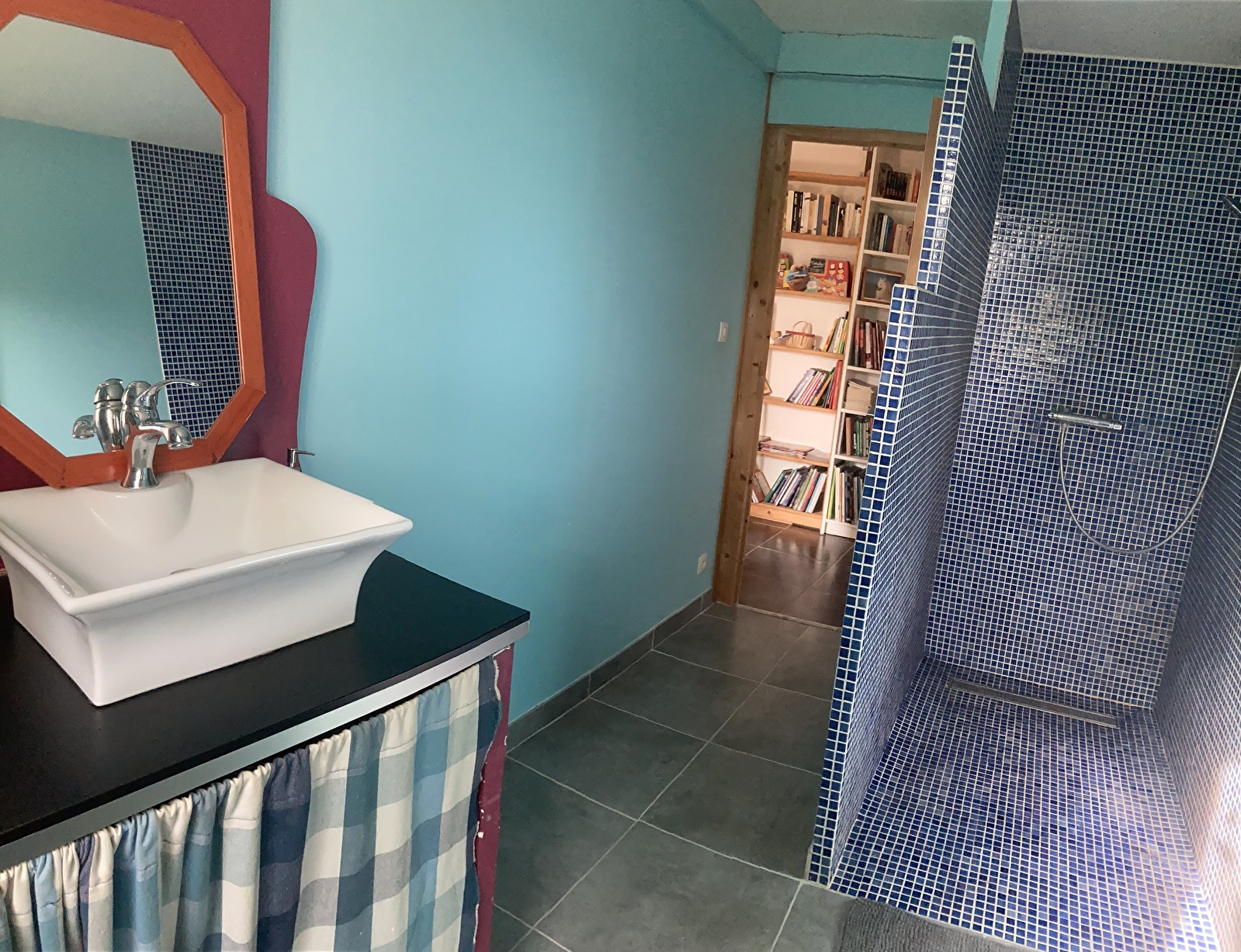 Une salle de bain lumineuse disposant d'une grande douche à l'italienne.