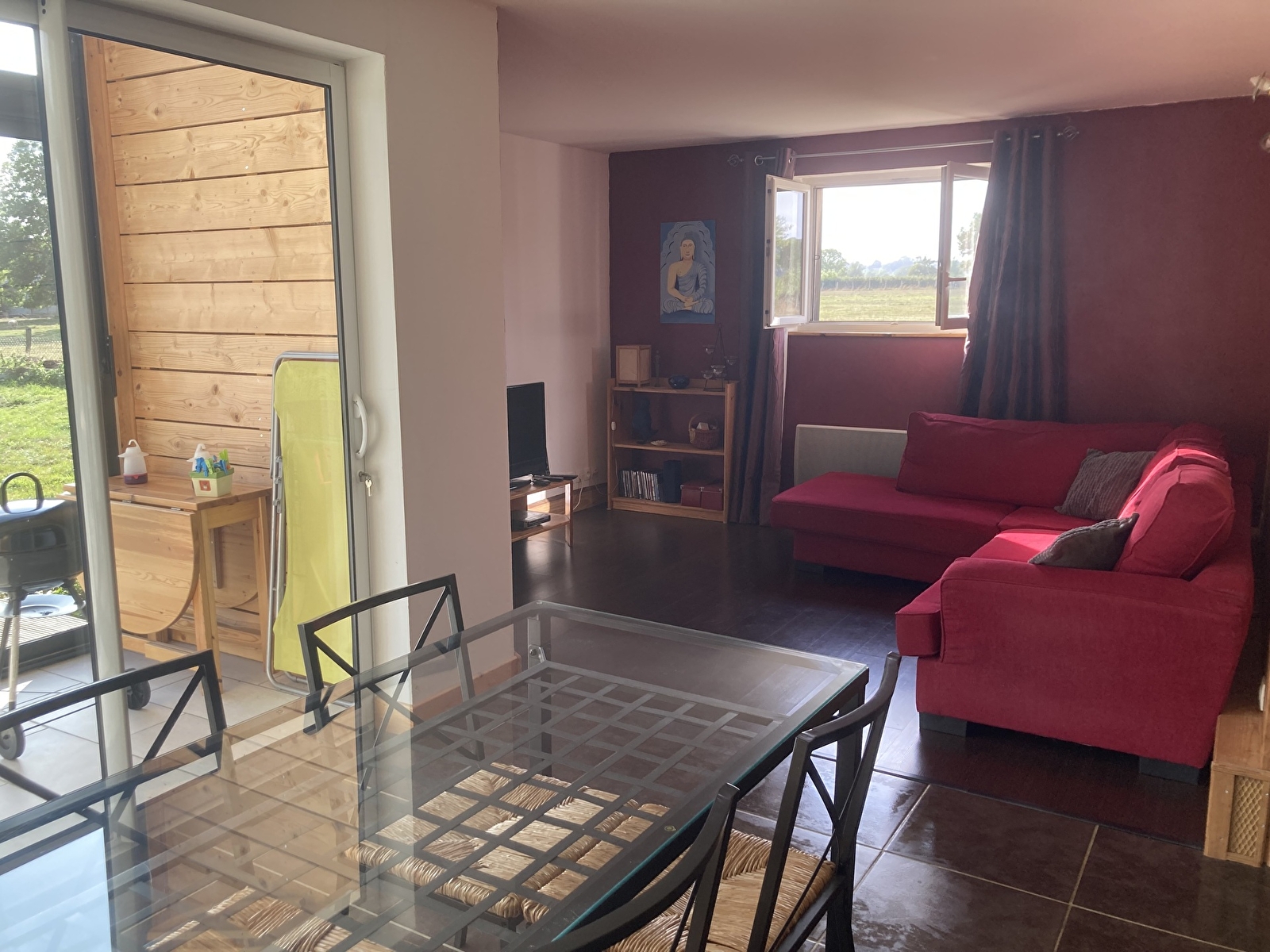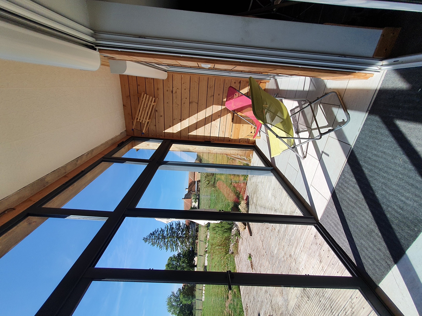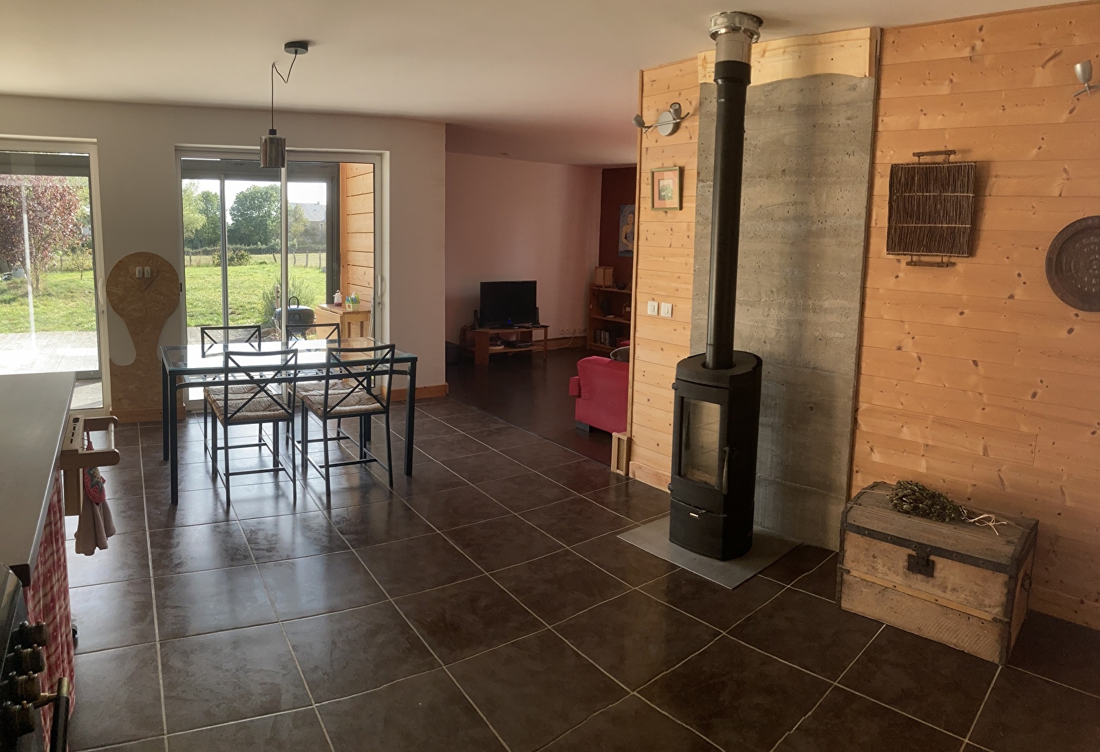 Une pièce à vivre spacieuse et chaleureuse, ouverte sur la serre solaire, parfait pour se relaxer ou partager des moments conviviaux.