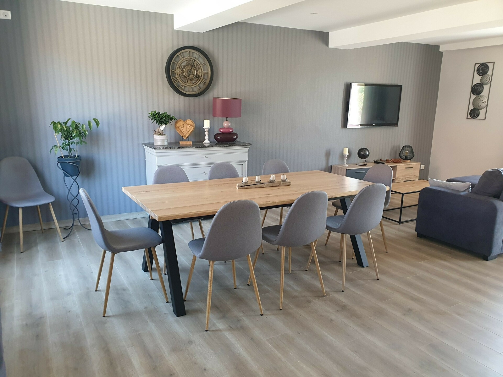Entre Chalonnais et Charolais, maison apparente entièrement rénovée en 2020 sur la commune de Germagny qui vous accueille dans une dépendance individuelle de 6 couchages (mitoyen des propriétaires mais totalement indépendant). Vous pourrez profiter d'un salon séjour avec cuisine ouverte de presque 60 m² au rez-de-chaussée avec une ouverture sur sa terrasse. Une terrasse qui vous offrira une vue sur les forêts, prairies et surtout les bords de Guye.
