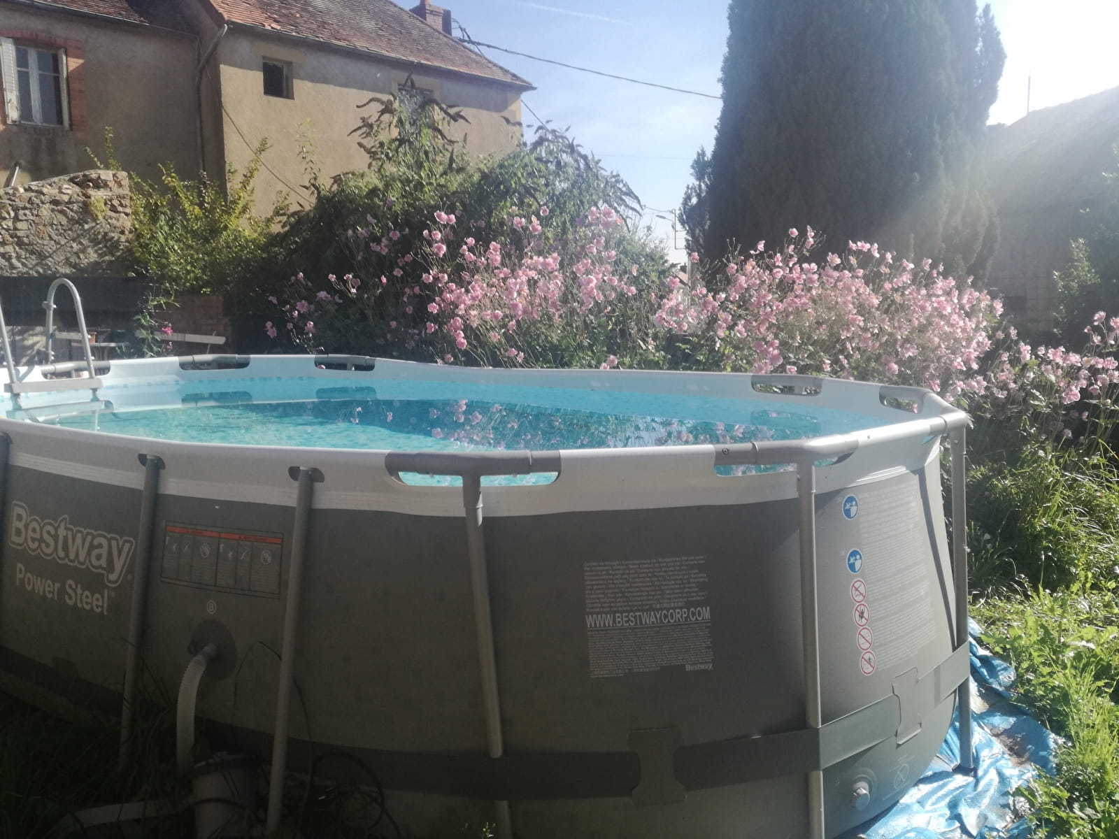 Jardin clôturé , barbecue , meubles de jardin , piscine , toboggan , bac à sable , maisonnette , trottinette, petit vélo