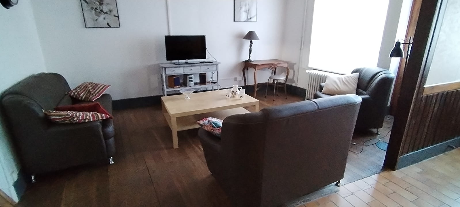 Rez-de-chaussée : cuisine ( table , plaque de cuisson , cafetière/percolateur , four , micro-ondes , lave-vaisselle , lave linge , combi réfrigérateur/congélateur ) salon : TV , fauteuils , internet et WIFI