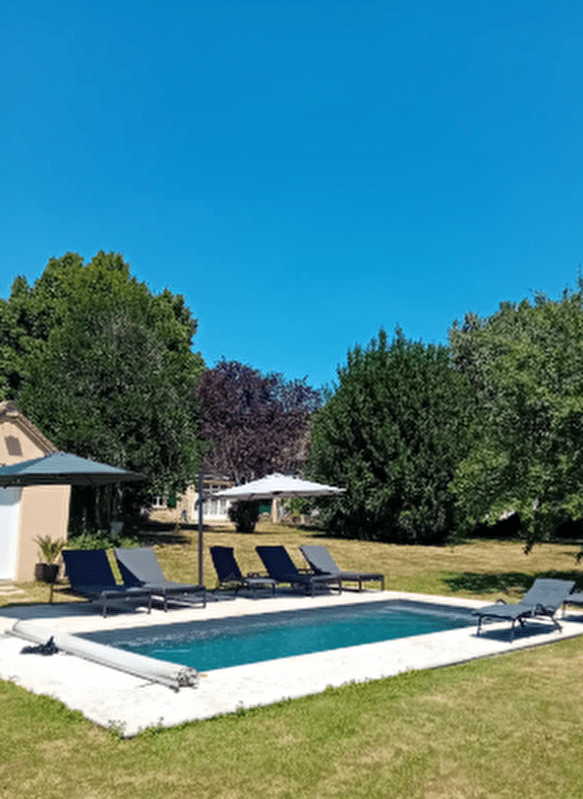 Pour une parenthèse paisible loin du brouhaha des villes, pourquoi ne pas venir vous détendre au bord de la piscine chauffée au coeur d'un jardin d'un hectare ? L'hiver c'est au coin du feu de la cheminée que vous pourrez profiter de cette charmante maison de campagne. Vous accéderez à la maison par son grand jardin aux nombreux arbres fruitiers. La maison, de 200m², a tout de la maison de campagne traditionnelle, avec poutres et pierres apparentes. Quatre chambres sont à votre disposition (une au rez-de-chaussée et trois à l'étage).
