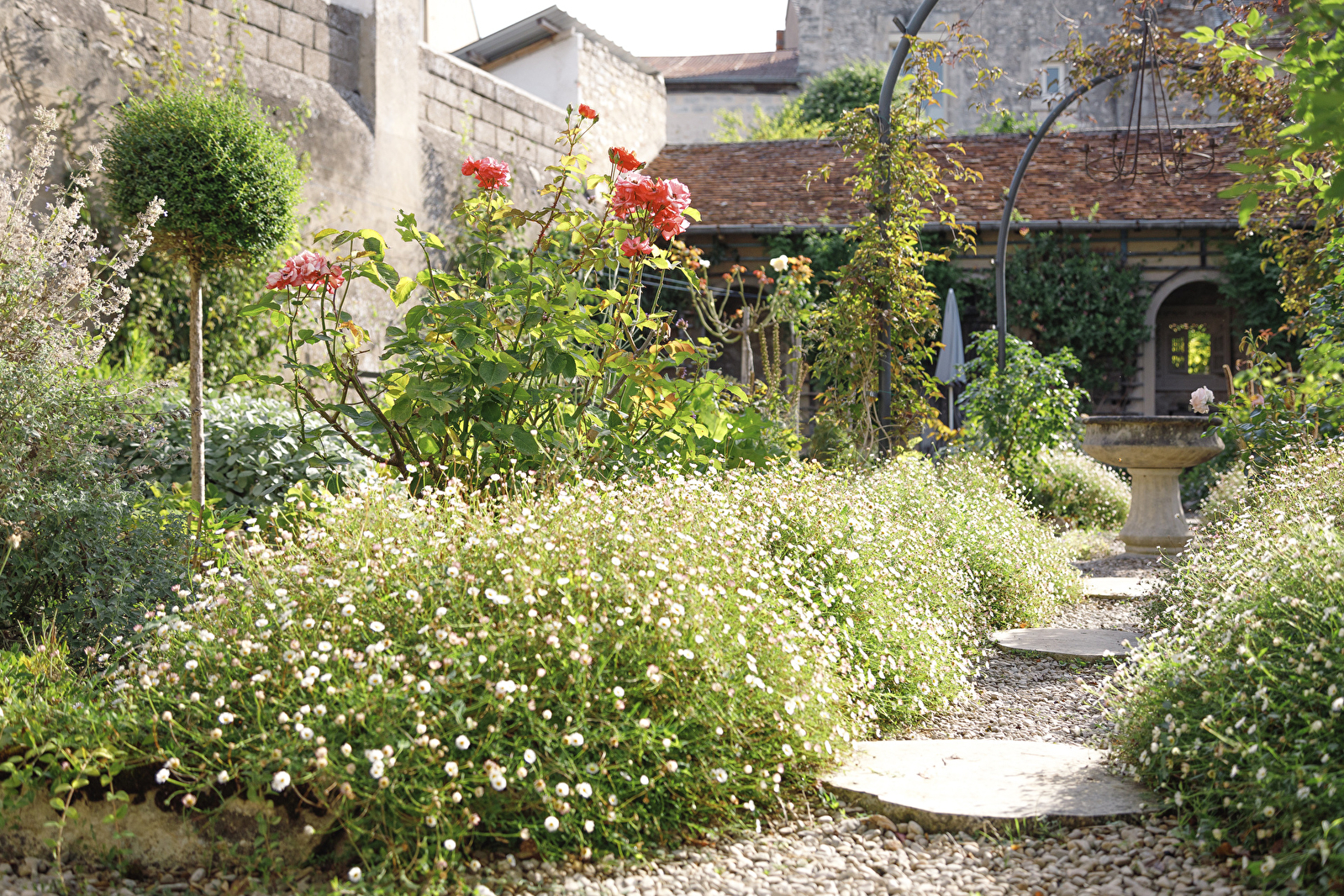 À l’extérieur, vous pourrez vous détendre dans le jardin fleuri de la maison, ou profiter de la fraîcheur de la cour privée - un lieu charmant pour savourer un verre en soirée.