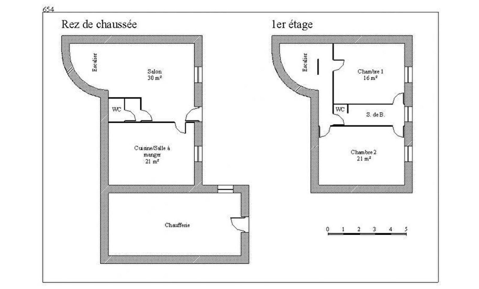 Rez-de-chaussée : cuisine équipée, vaste salon (Poste radio/cd, lecteur DVD, Télévision, Piano). WC.