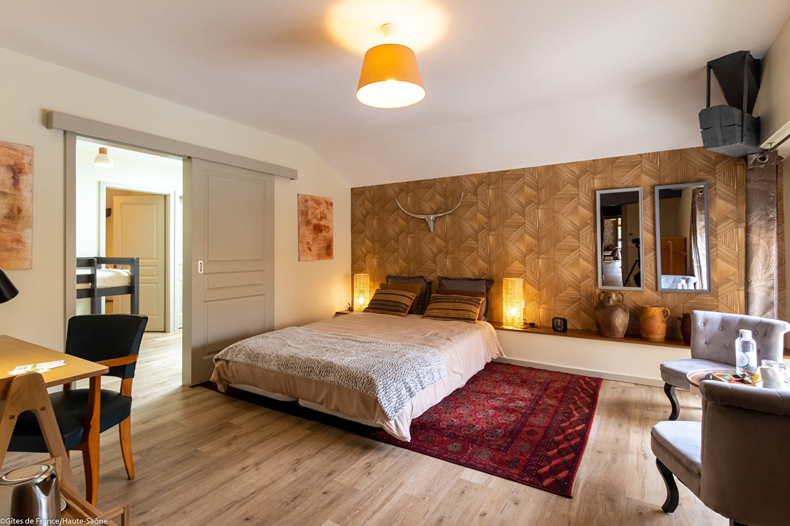 La décoration est soignée et faite avec goût et la literie de qualité. Vous y trouverez le calme et les bienfaits d'un séjour au cœur d'une campagne Haute-saônoise verdoyante.