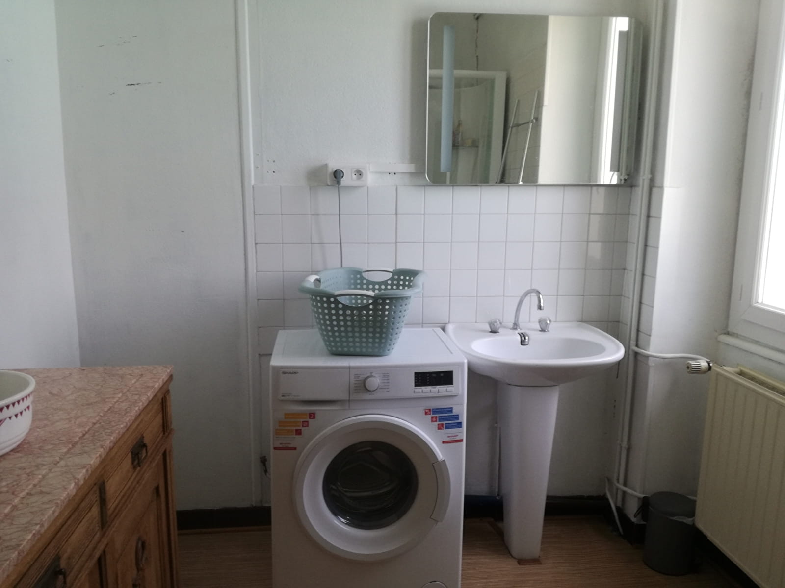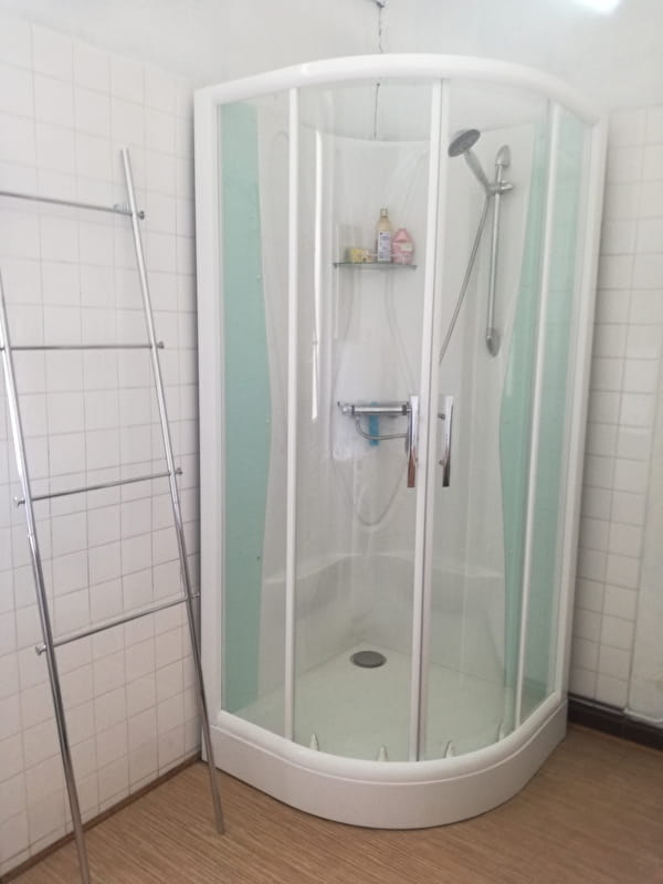Salle de bains : douche , lavabo , lave linge , WC séparé