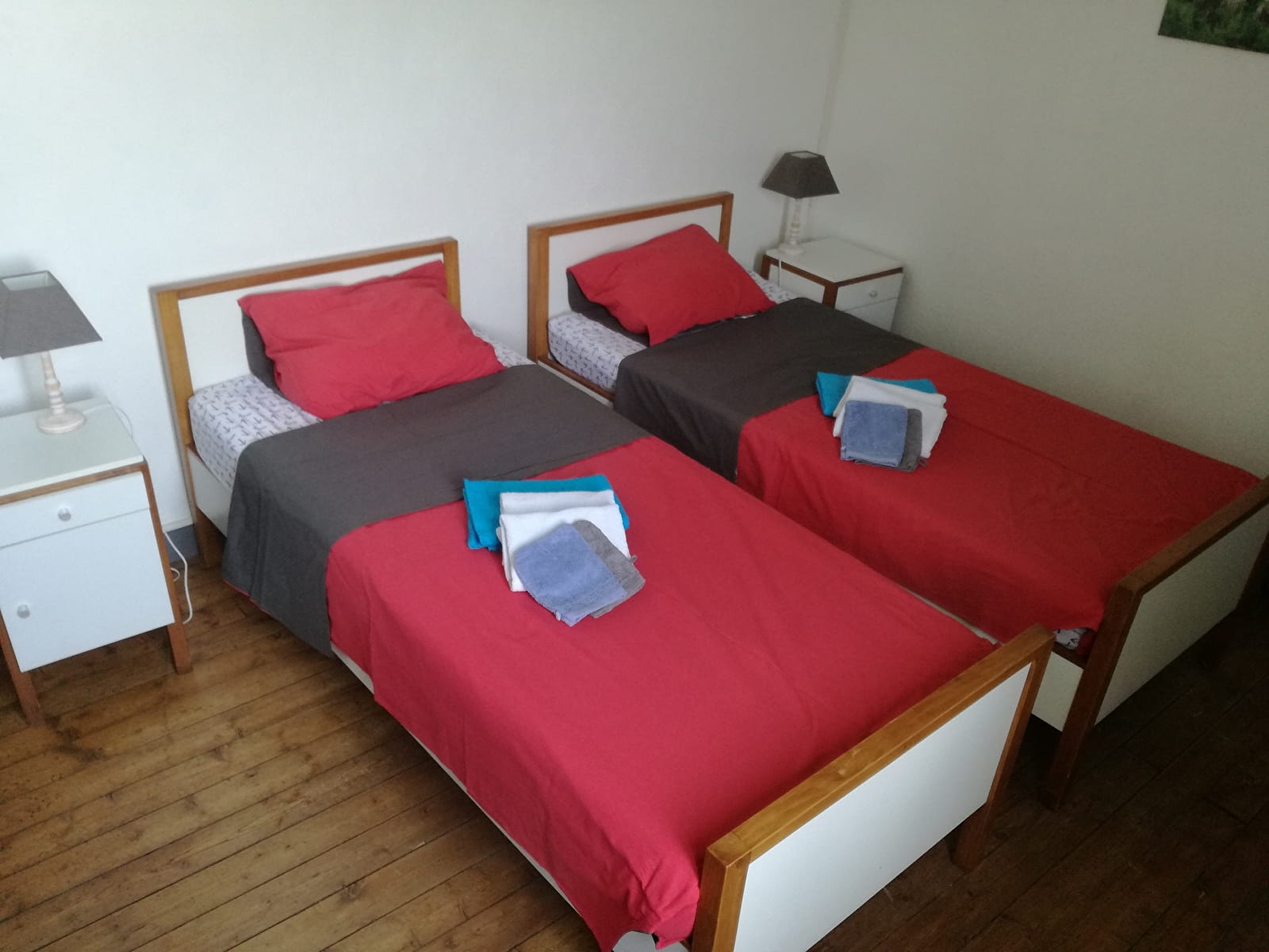 Etage : 2 chambre avec lit double , 1 chambre 2X lits simples . chambre bébé , sur demande : box , tapis à jouer , chaise haute ...