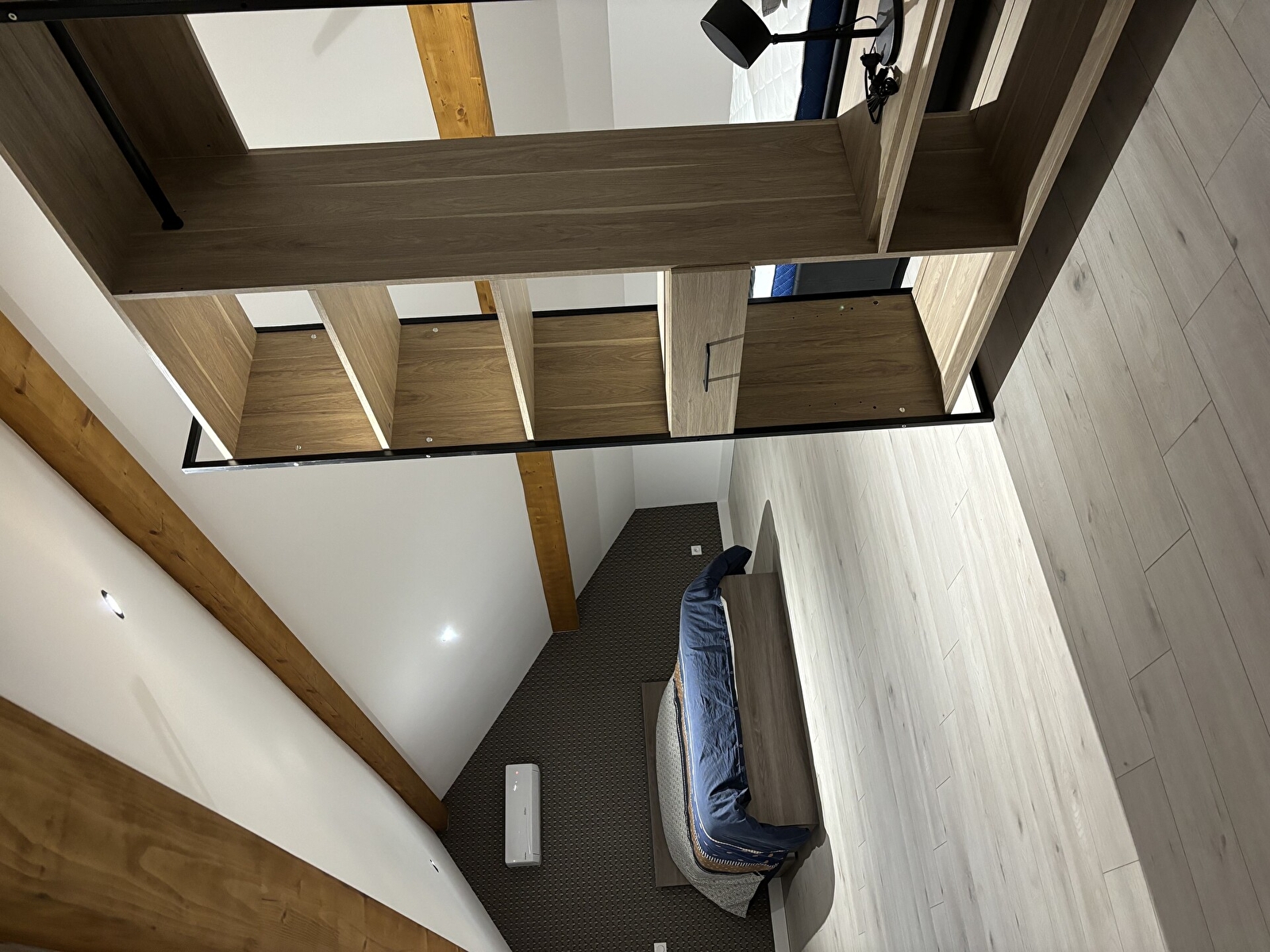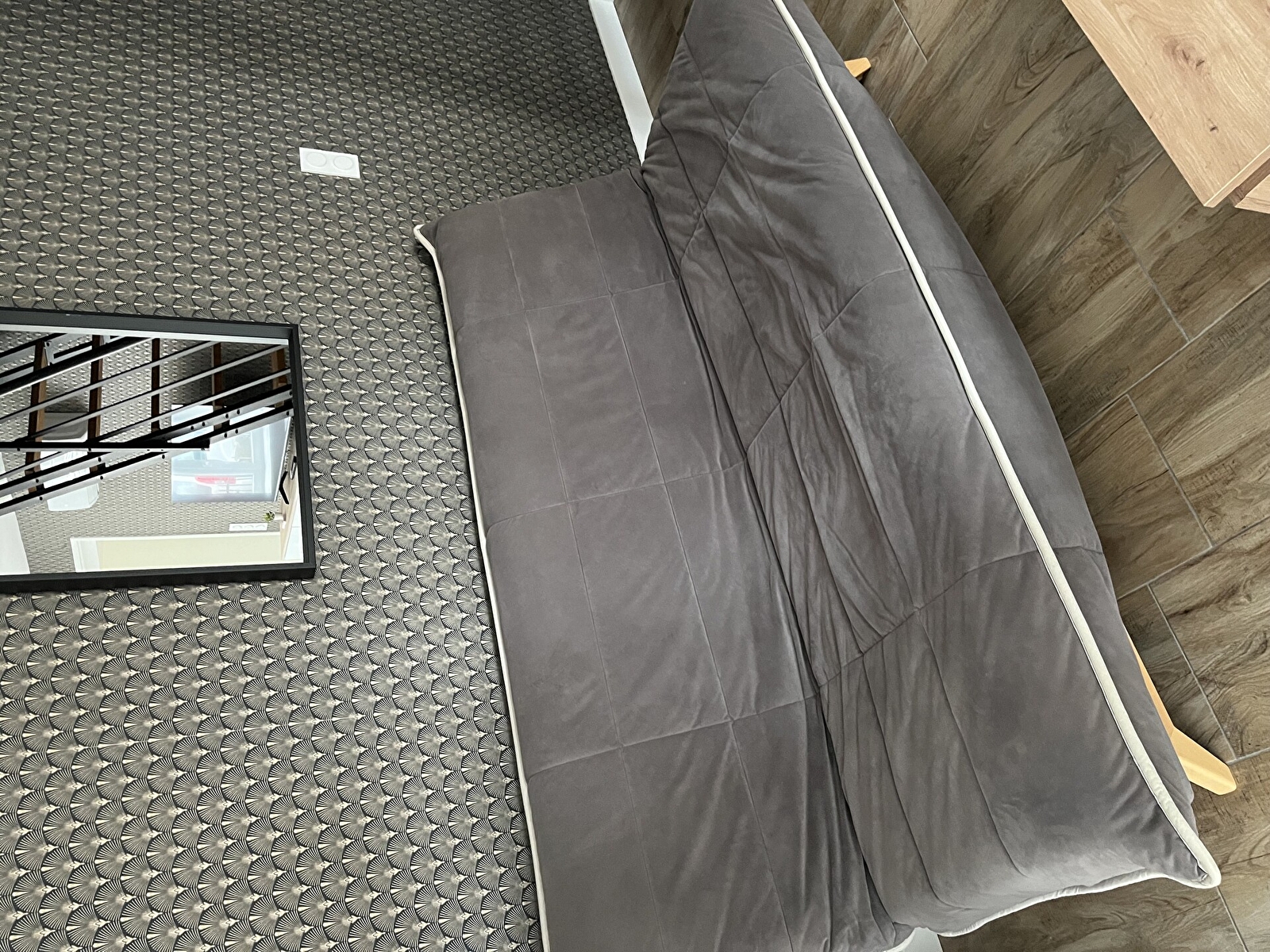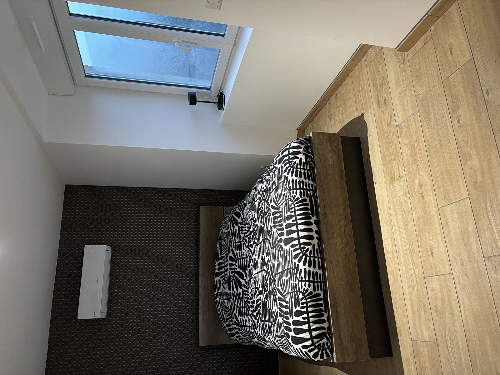 À l’étage, une grande chambre comprenant un lit double ainsi qu’un lit simple. Nous mettons également à disposition un lit parapluie.