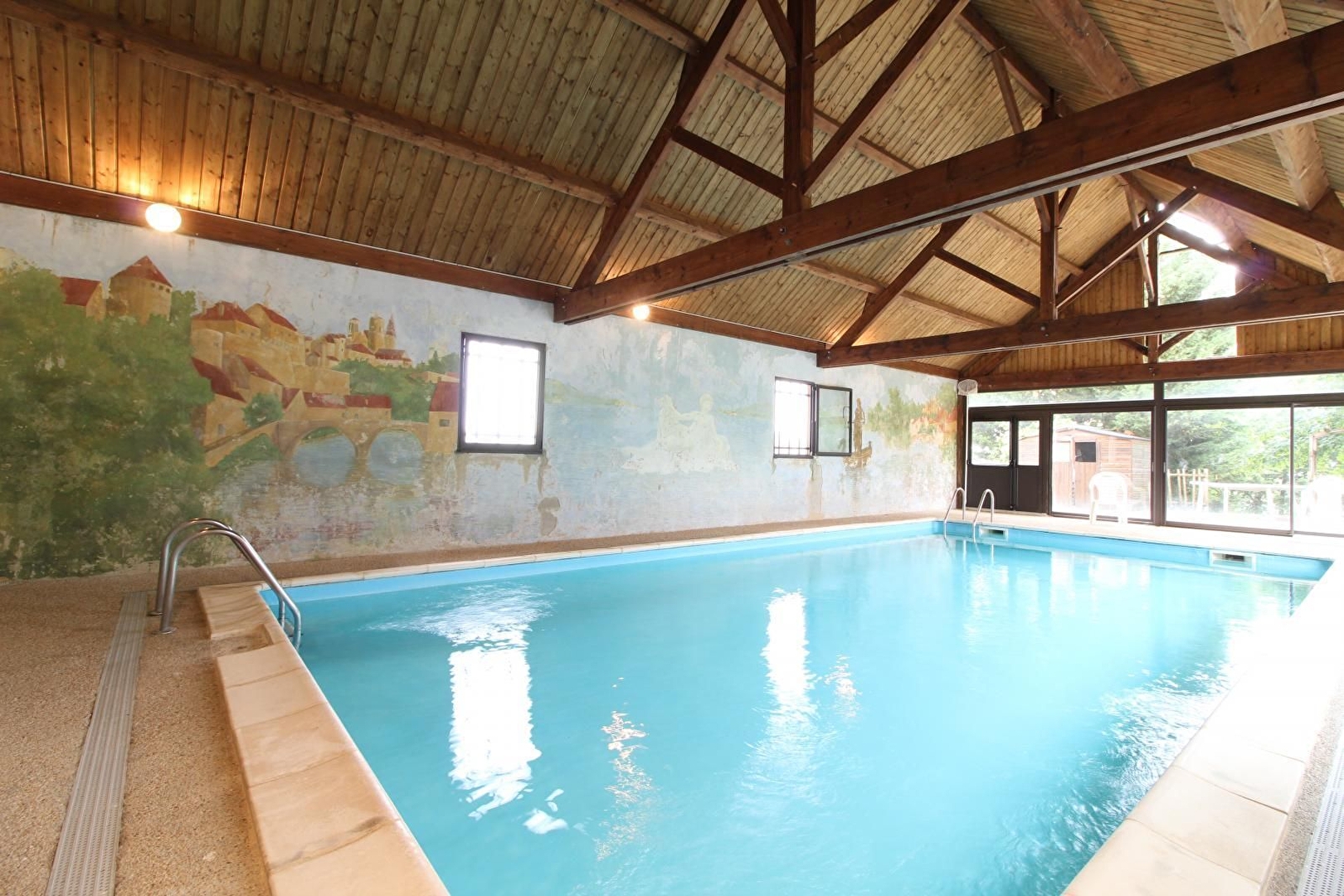 Gîte de séjour confortable en rez-de-chaussée et étage. Cuisine équipée (vaisselle pour 80 pers.). Salle de 150 m² (sono, TV, vidéo). 2 chambres 2 personnes accessibles aux personnes handicapées avec douche. 3 chambres 4 personnes, 4 chambres 6 personnes. 2 blocs sanitaires chacun avec 3 douches, lavabos et 2 wc, 1 douche, 2 lavabos, 3 wc pour personnes. handicapées. Piscine couverte. Lave-vaisselle. Gestion libre, pour 40 personnes.