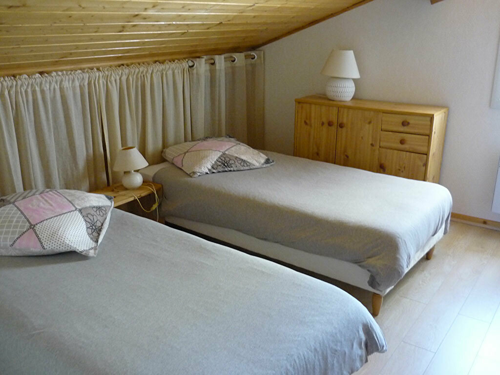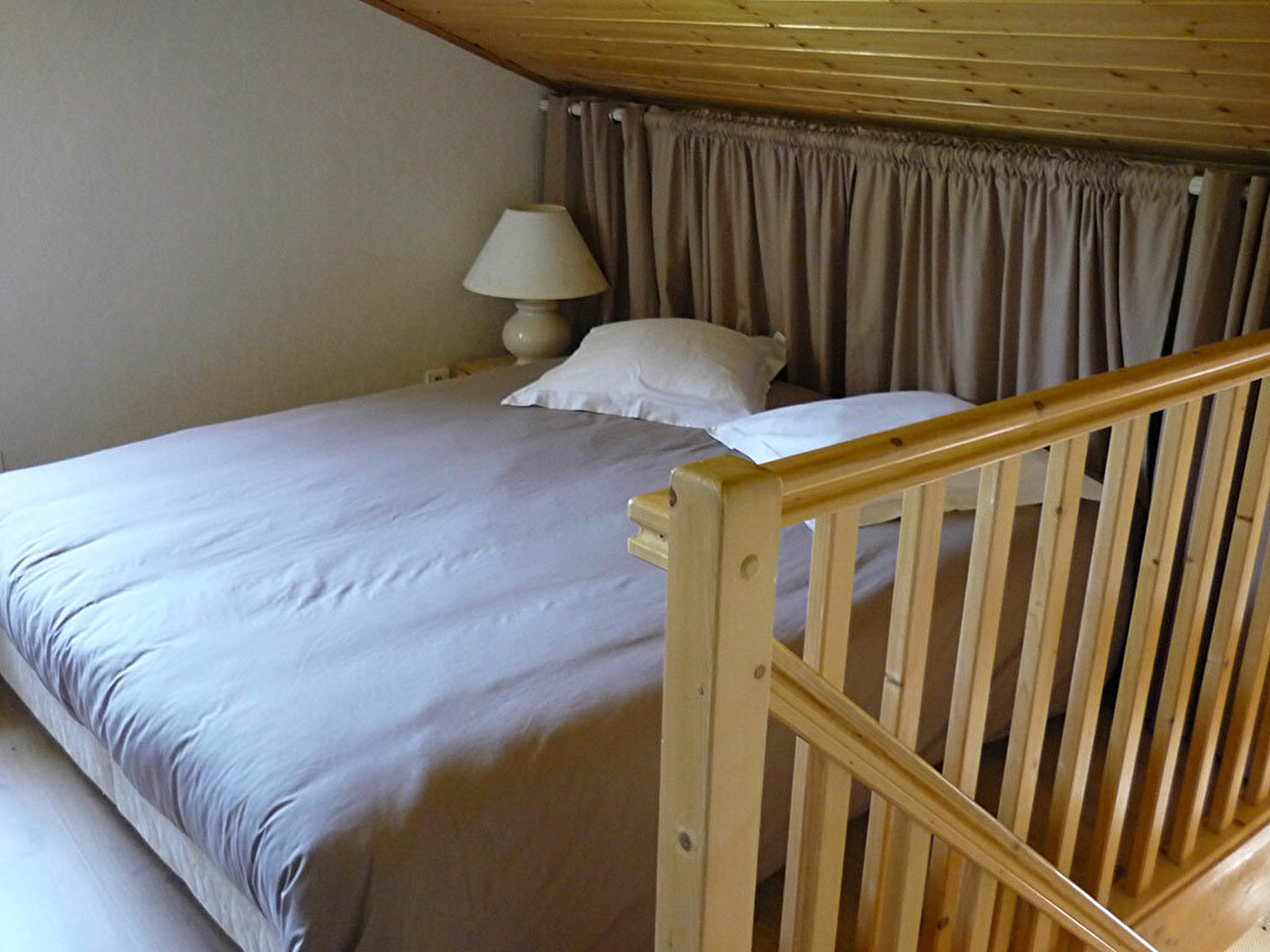 A l'étage, mezzanine, avec 1 lit de 160, et une chambre avec 2 lits de 90.
