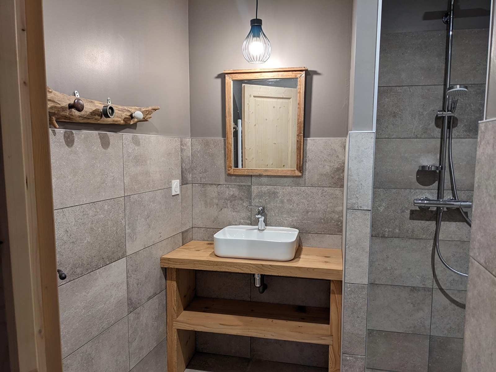 Ce meublé comporte une pièce à vivre avec kitchenette et lit convertible pour 2 personnes(lit de 160), 1 chambre avec lit 2 personnes (lit de 160), salle de bain et wc séparés. La décoration est faite avec beaucoup de goût !