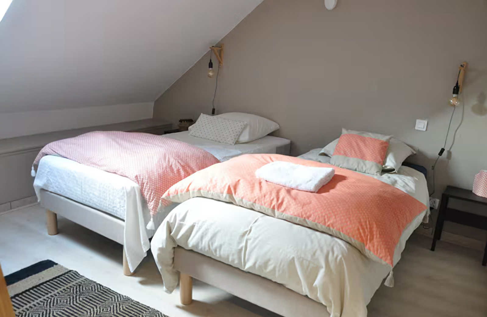 La maison "Les Amoureuses" de 120m² est composée d'une grande cuisine équipée (19m²), d'un séjour (28m²), de trois chambres situées à l'étage (dont l'une avec salle d'eau), d'une salle de bain et de deux WC.
