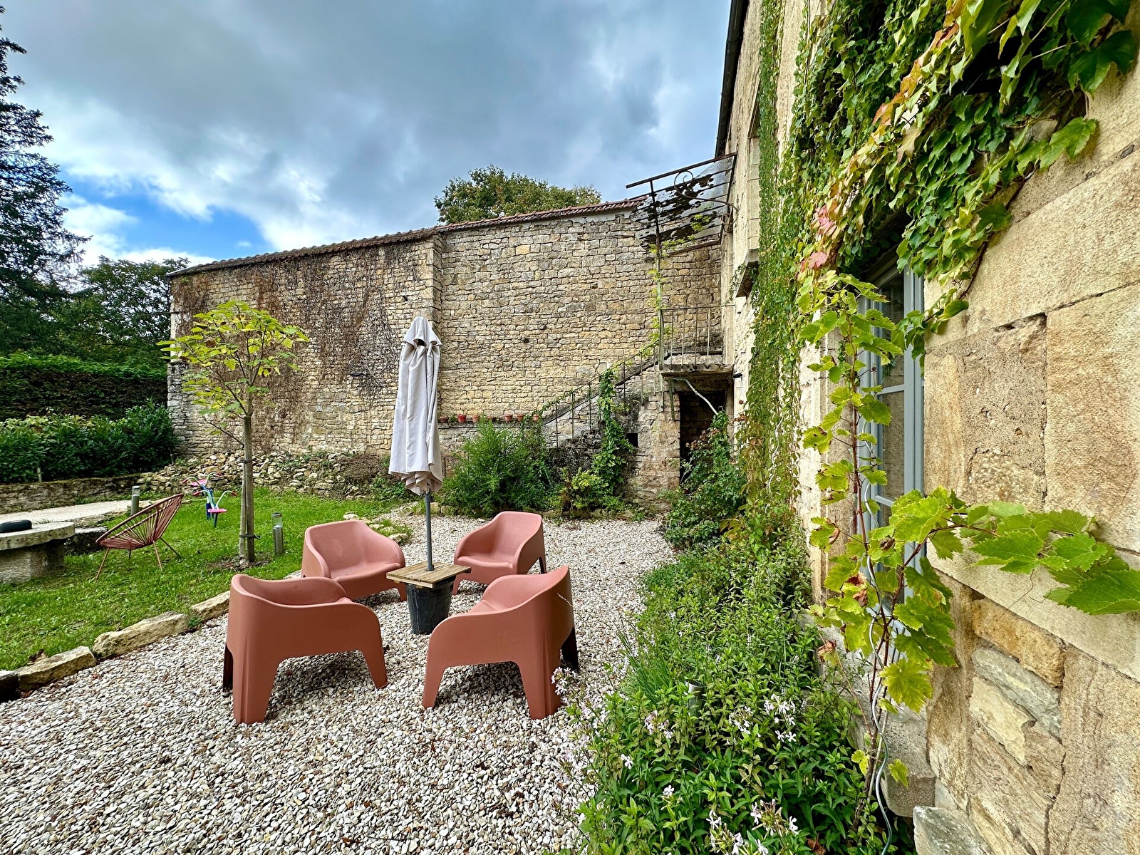 Extérieur : - Jardin privé - Jacuzzi en option - Terrasse privée coin repas - Barbecue charbon Weber - 8 chiliennes - 2 vélos avec possibilité sièges enfants sont à votre disposition pour de grandes balades à travers les champs de blé ou le long du canal de Bourgogne. - Des vélos pour enfants ainsi que trottinettes…