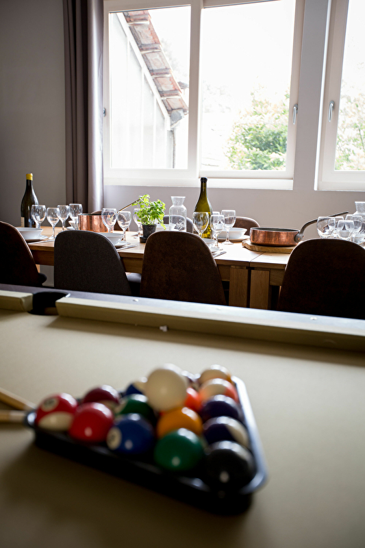 Ainsi vous trouverez un grand salon avec écran 164 cm, billard René Pierre, baby foot René Pierre, Flipper, une piscine d’agrément, un grand barbecue, une cour intime, un jardin d’hiver, une grande cave voûtée, des jeux de société.