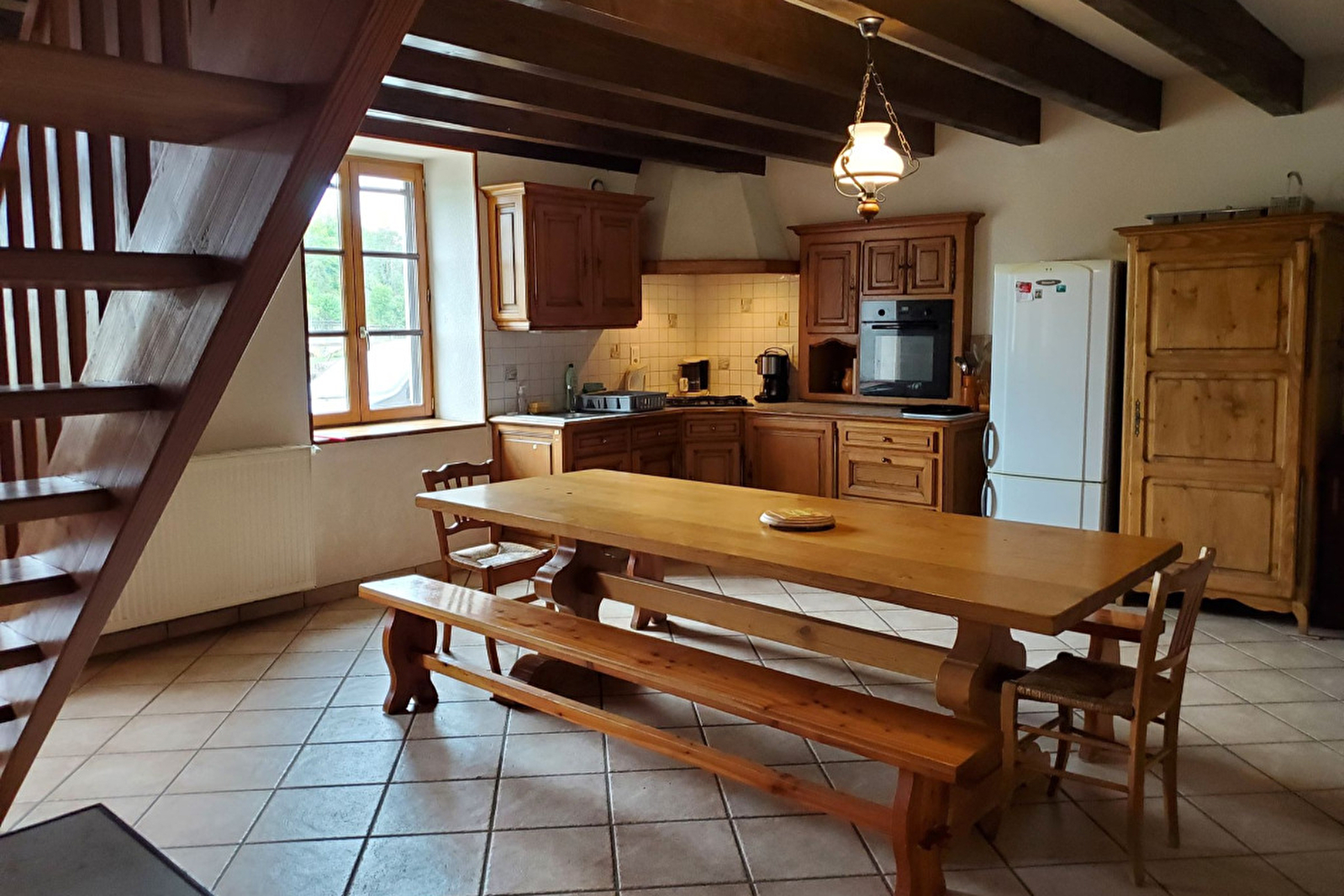 Ce gîte vous offre un grand séjour/cuisine aménagée , un