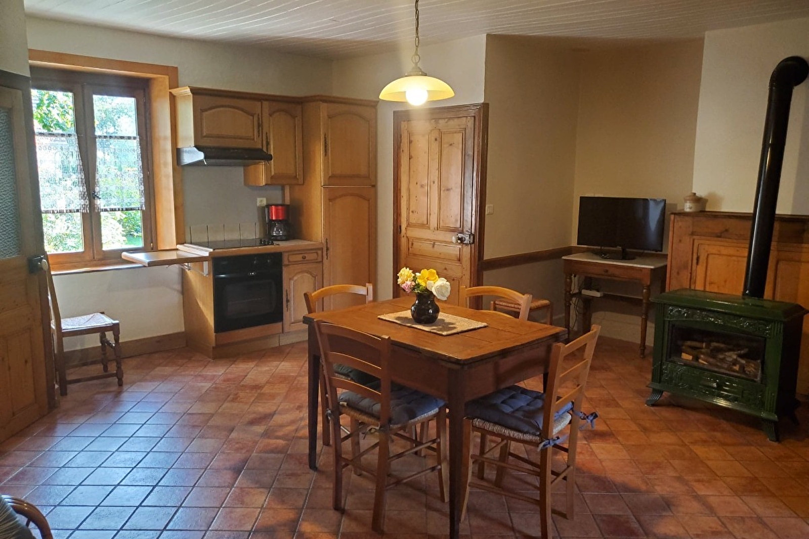 Suivant la saison, vous pourrez profiter de la douce chaleur du poêle à bois (fourni) ou vous prélasser au bord de la piscine du propriétaire mise à votre disposition (sous la responsabilité des utilisateurs), tout en bénéficiant des aménagements extérieurs comme le salon de jardin privatif agrémenté d’un barbecue pour vos repas estivaux en famille ou entre amis dans le jardin arboré avec goût.