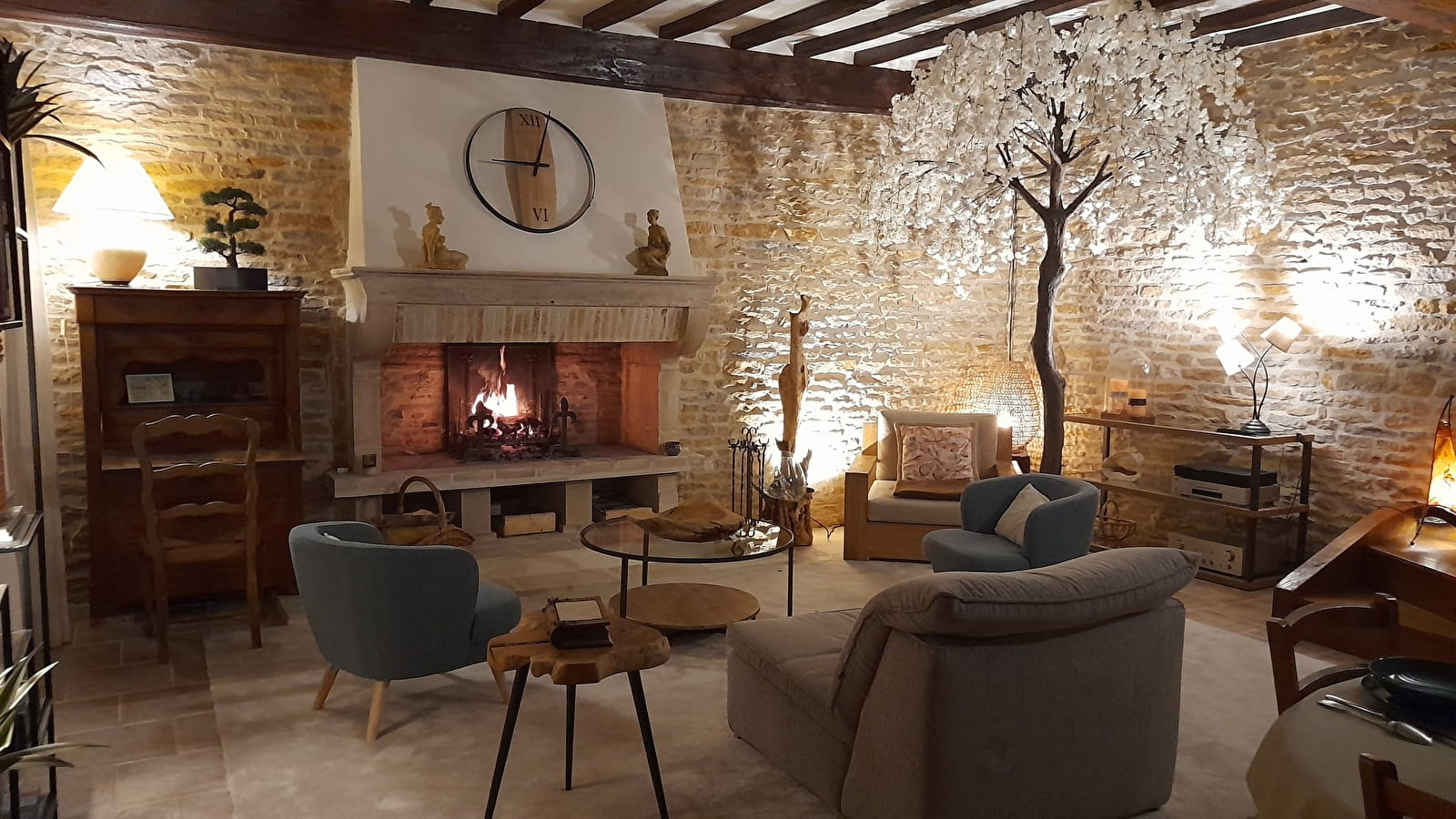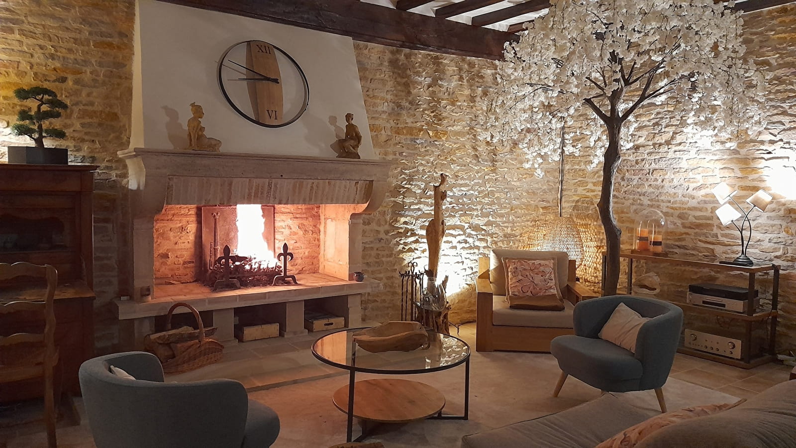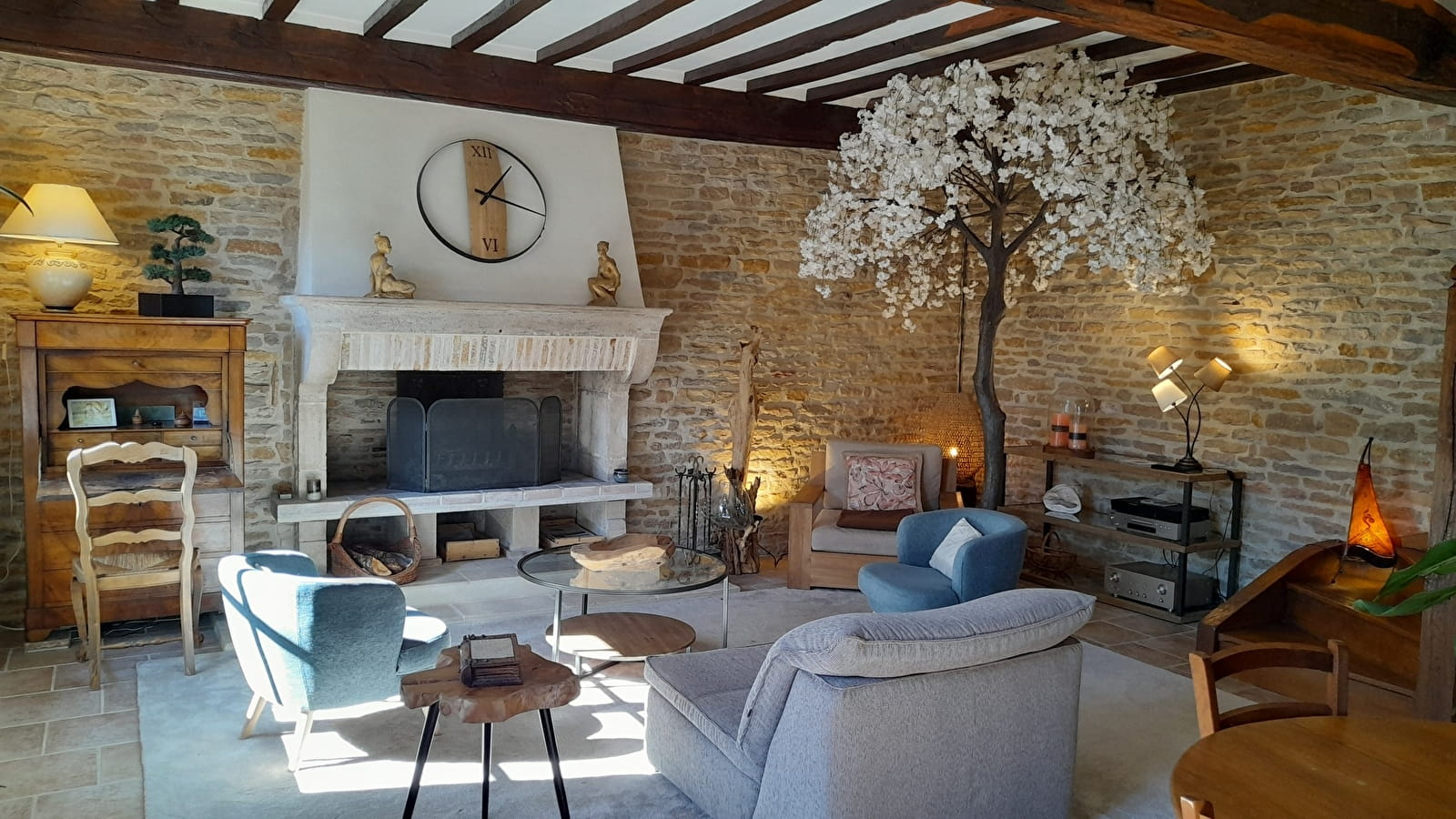 - une grande pièce à vivre de 40 m² avec une belle cheminée opérationnelle et une cuisine équipée attenante.