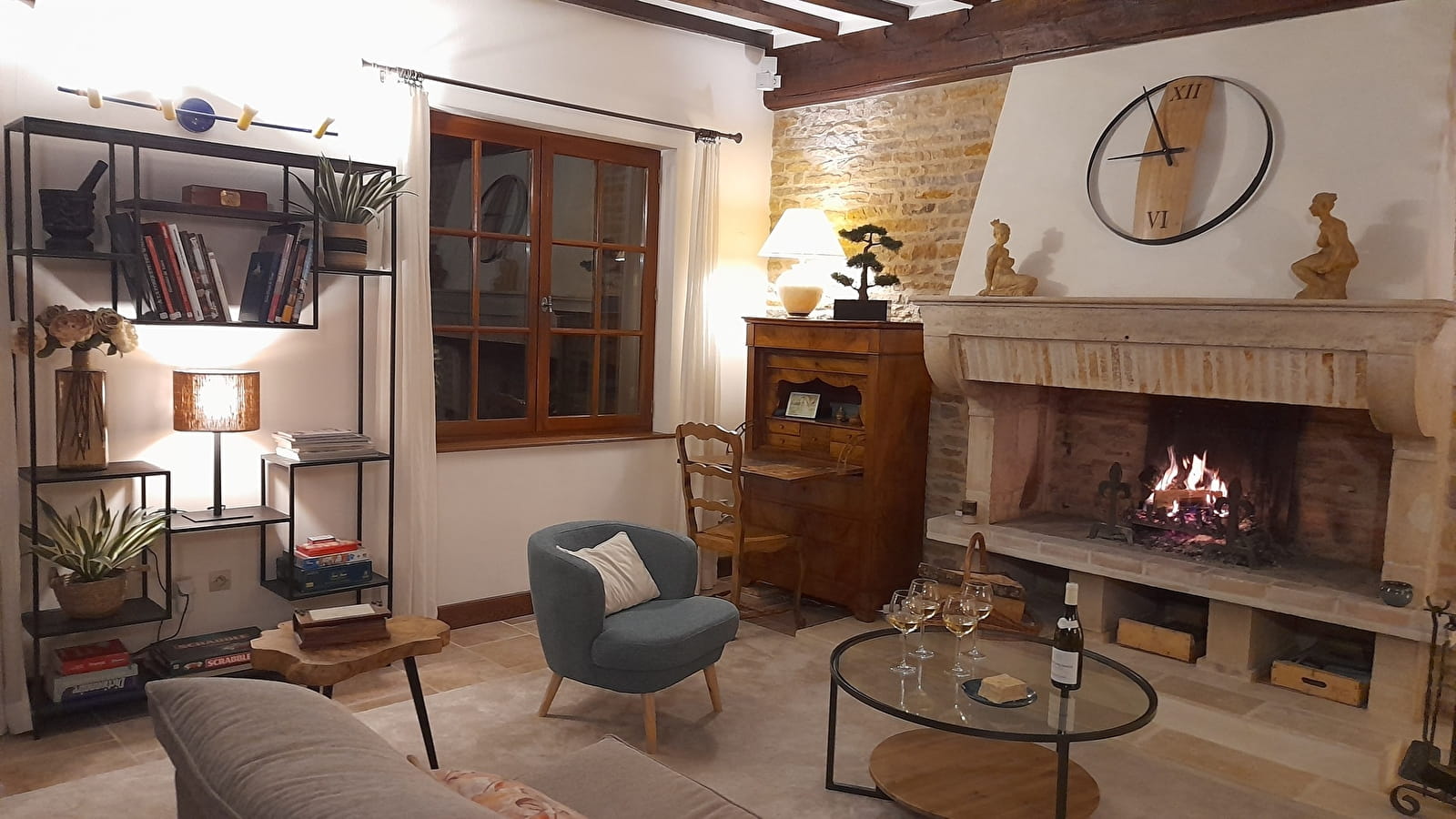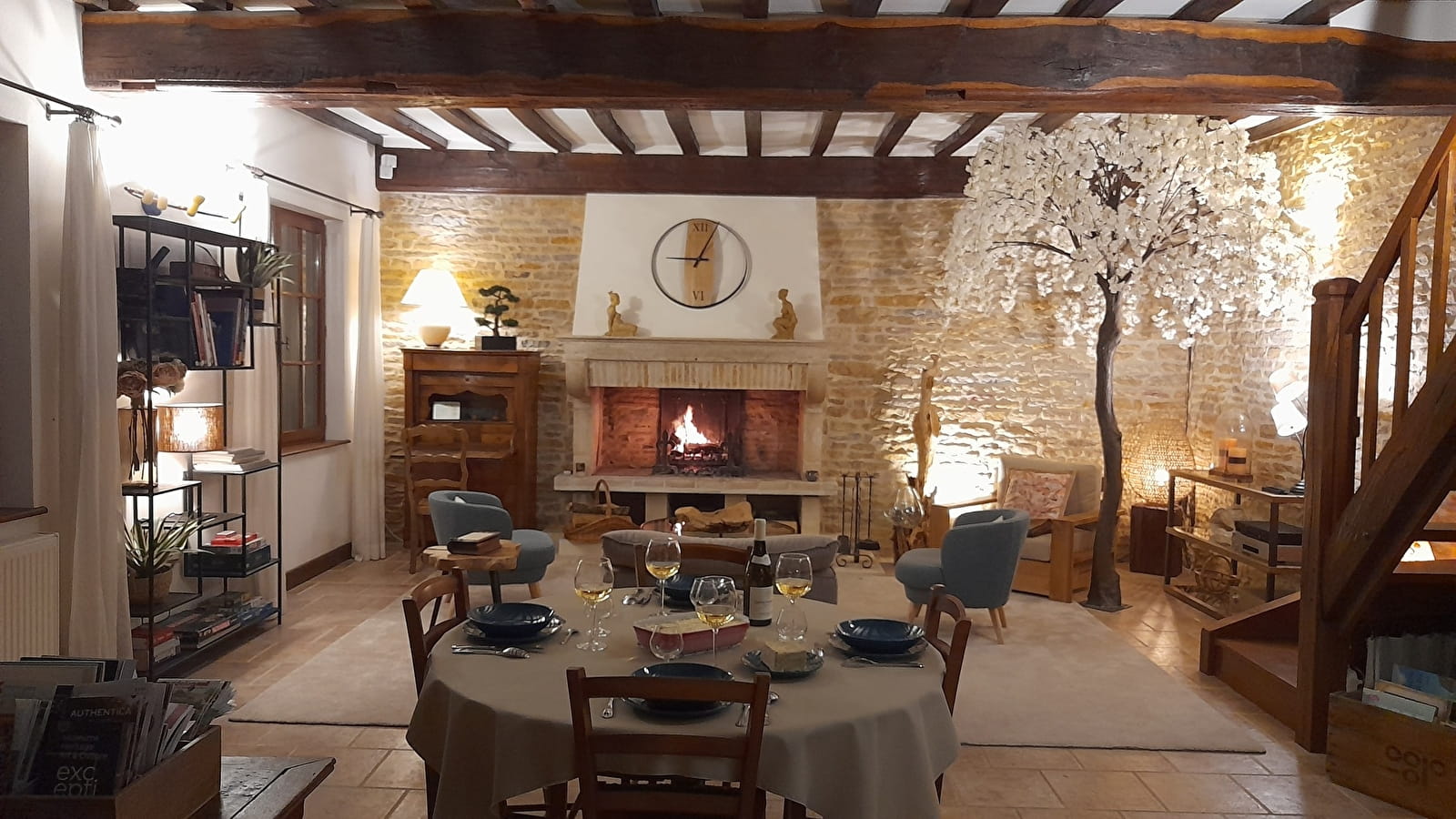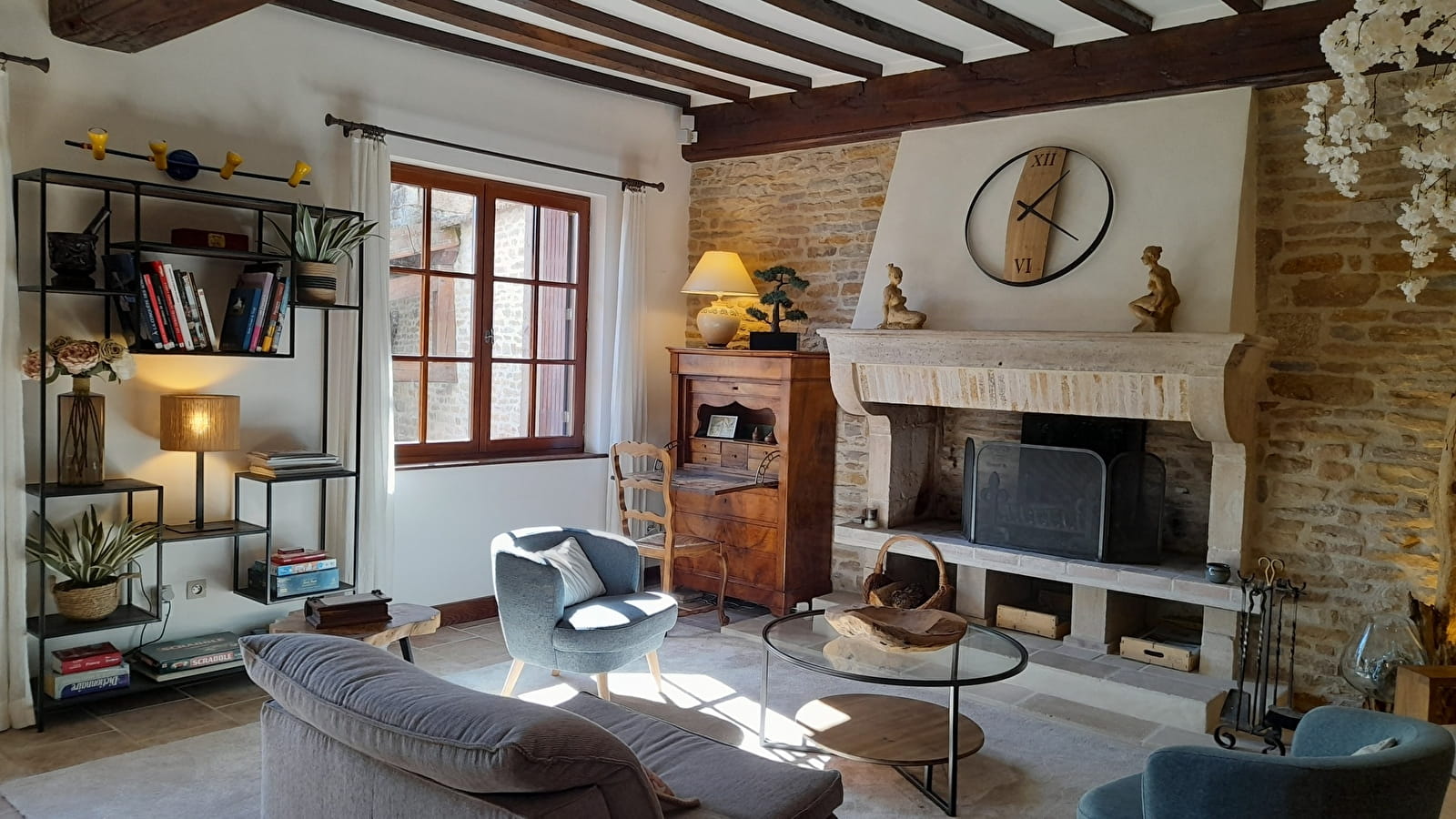 - une grande pièce à vivre de 40 m² avec une belle cheminée opérationnelle et une cuisine équipée attenante.
