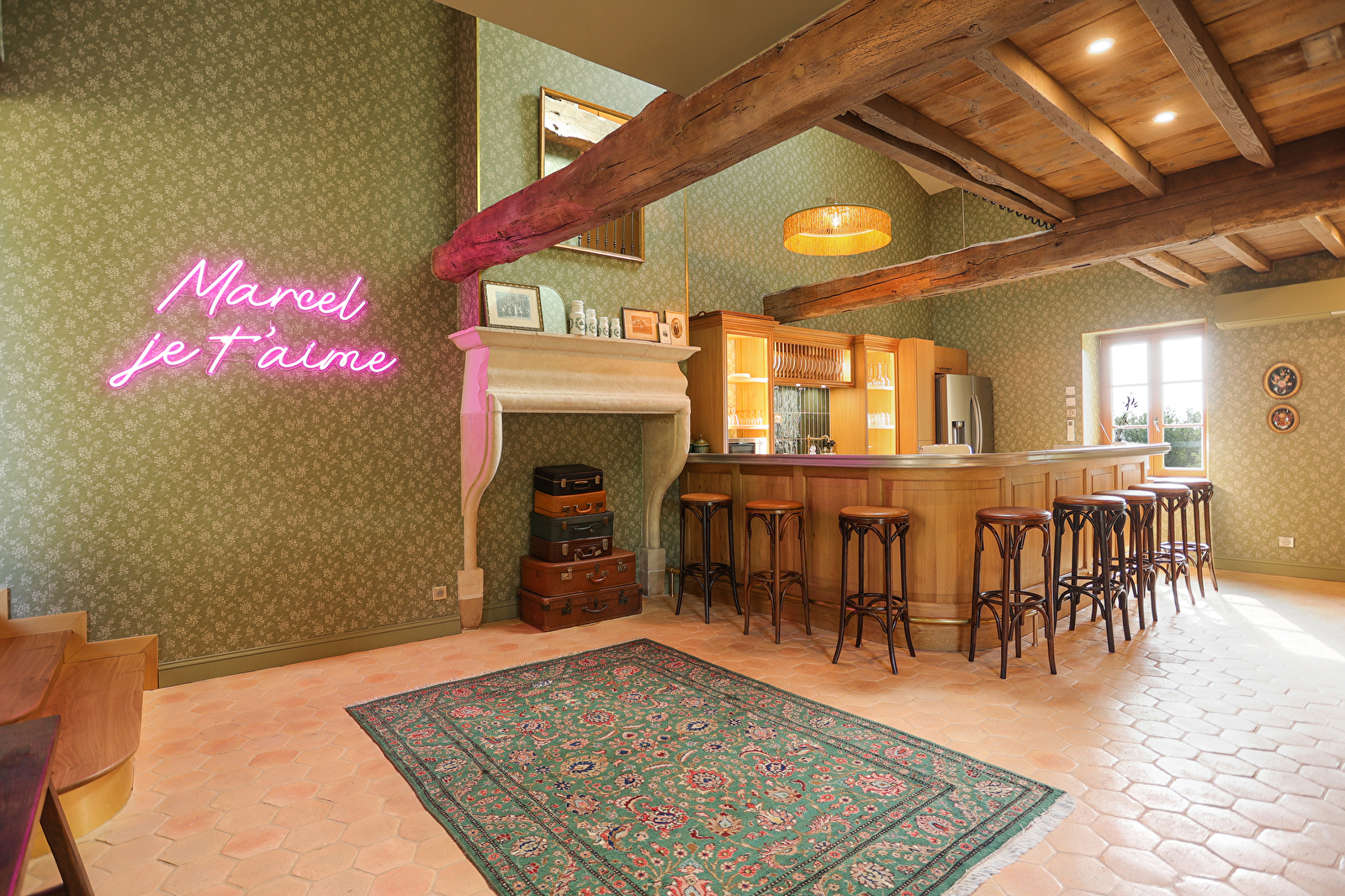 "Marcel je t'aime" : créer des souvenirs dans cette maison de famille au concept unique entre amis ou en famille. Au cœur du cru du Moulin-à-Vent, vous profiterez de la magnifique région du Beaujolais mais aussi de la Bourgogne. Sa décoration, son parc, ses équipements, ses 15 couchages et sa piscine intérieure chauffée à 30 degrés toute l'année font de cette endroit une adresse rare et forte en caractère.