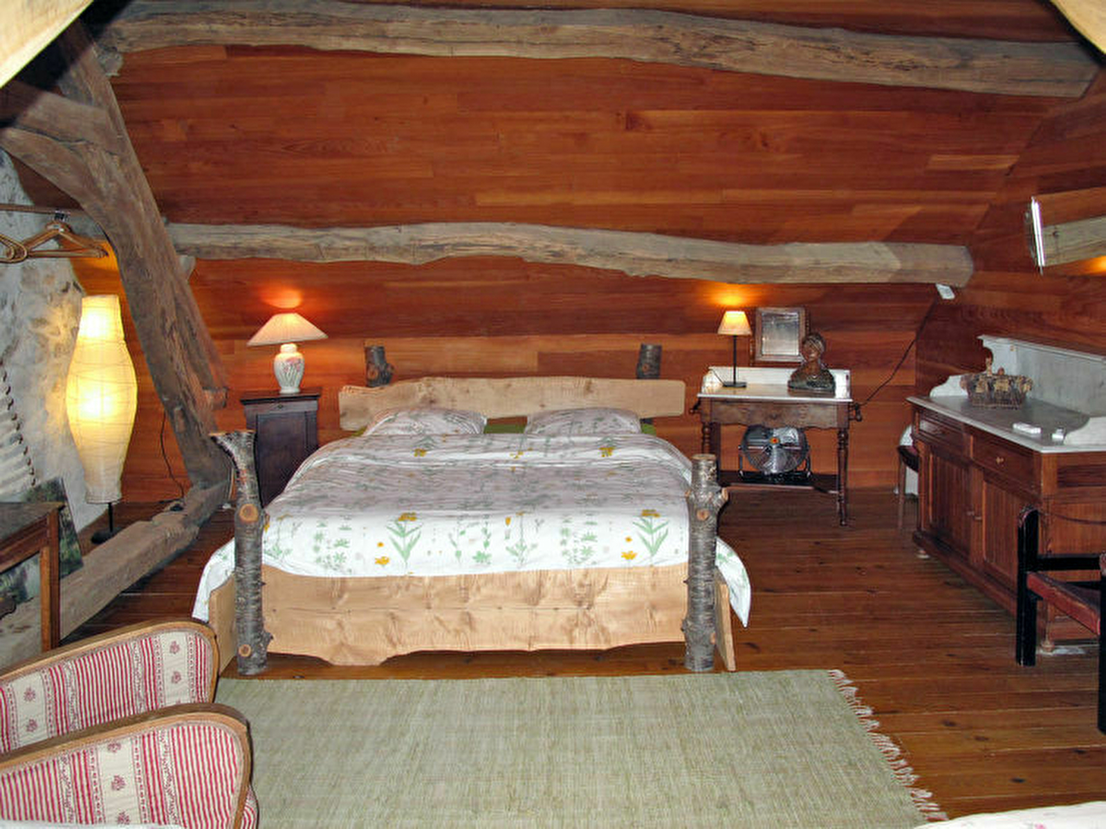 Sortie sur le jardin. Douche, WC séparé. À l'étage supérieur: (escalier raide) 1 chambre, mansardée, ouverte avec 2 lits (80 cm), 1 grand-lit (160 cm, longueur 200 cm). Chauffage électrique. Chauffage pas dans toutes les pièces. Sol en bois, sol en pierres naturelles.