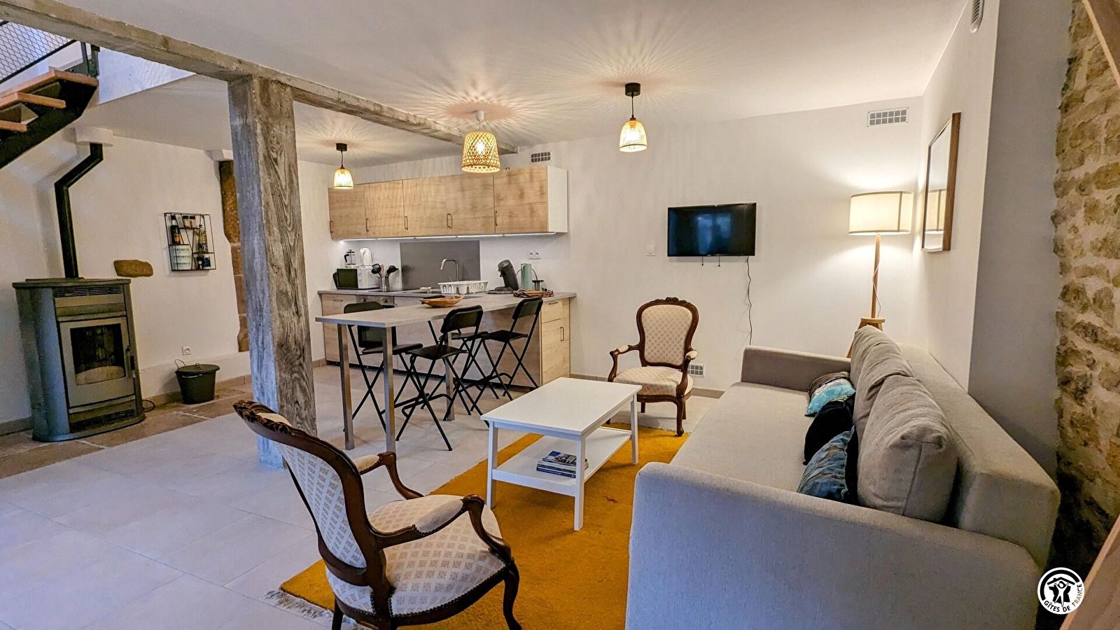 Gîte "tout compris" : draps, ménage, linge de toilette, chauffage et électricité.