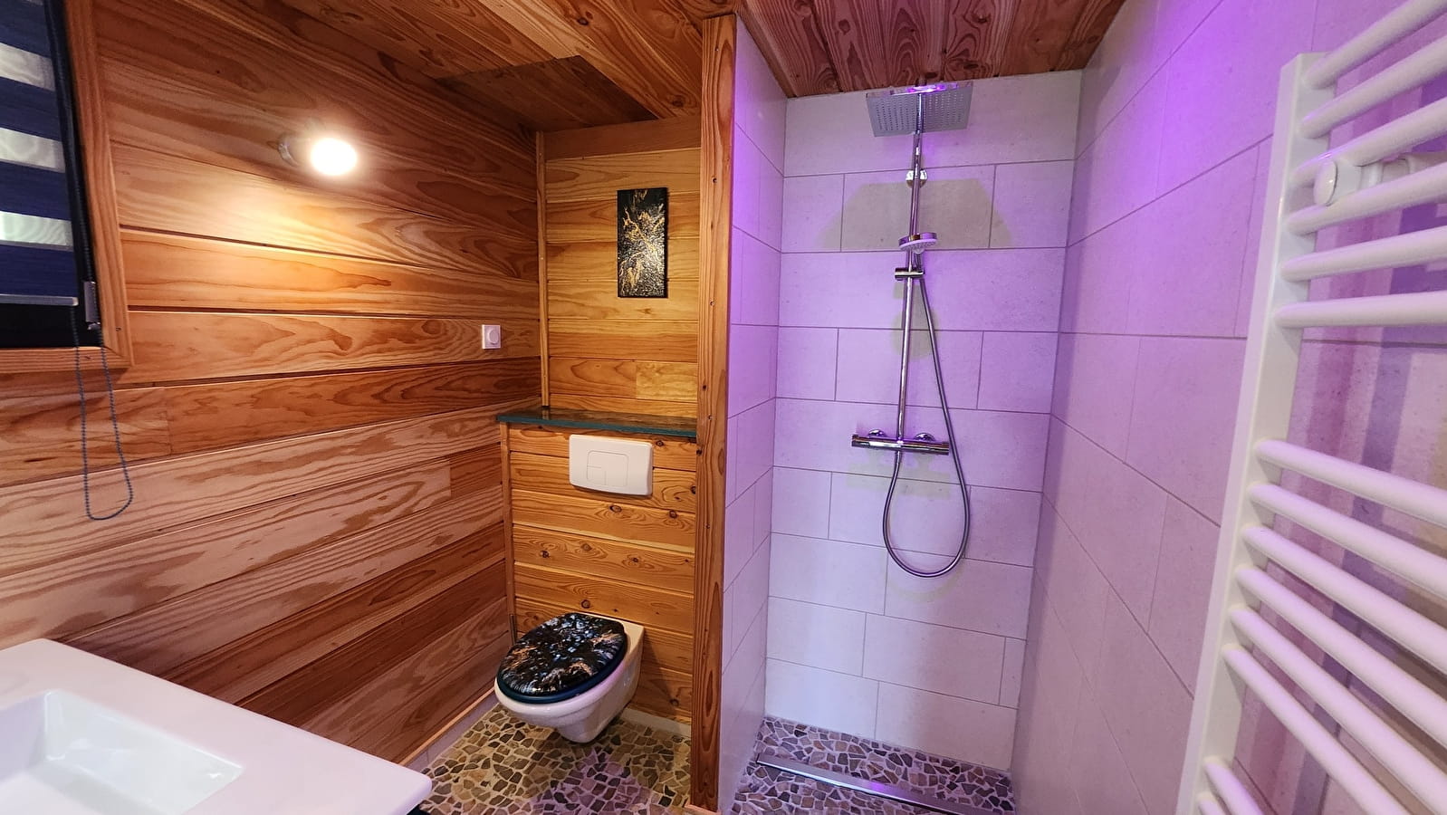 Plaisir et détente sont les maîtres-mots de ce petit coin de paradis des amoureux. Dans ce lodge cosy, neuf et équipé, qui associe le bois et la pierre naturelle, c'est le confort qui prime. À quelques pas, sur la terrasse, un bain nordique vous attend, été comme hiver et vous promet des moments de relaxation bien mérités. Aurora et Alain Tisserand les propriétaires des lieux proposent également des séances de découverte autour du hamac, et même, plus rare, sur demande, une initiation à l'hypnose ou à la peinture pouring. Vous avez à votre disposition une cuisine entièrement équipée, un lit escamotable et confortable de 160 x 200, WC et douche à l'italienne, le tout entièrement privatif. Et sur commande préalable, vous pouvez vous faire livrer des petits-déjeuners ou repas concoctés par un Chef émérite, avec au choix des menus mexicains ou franc-comtois.
