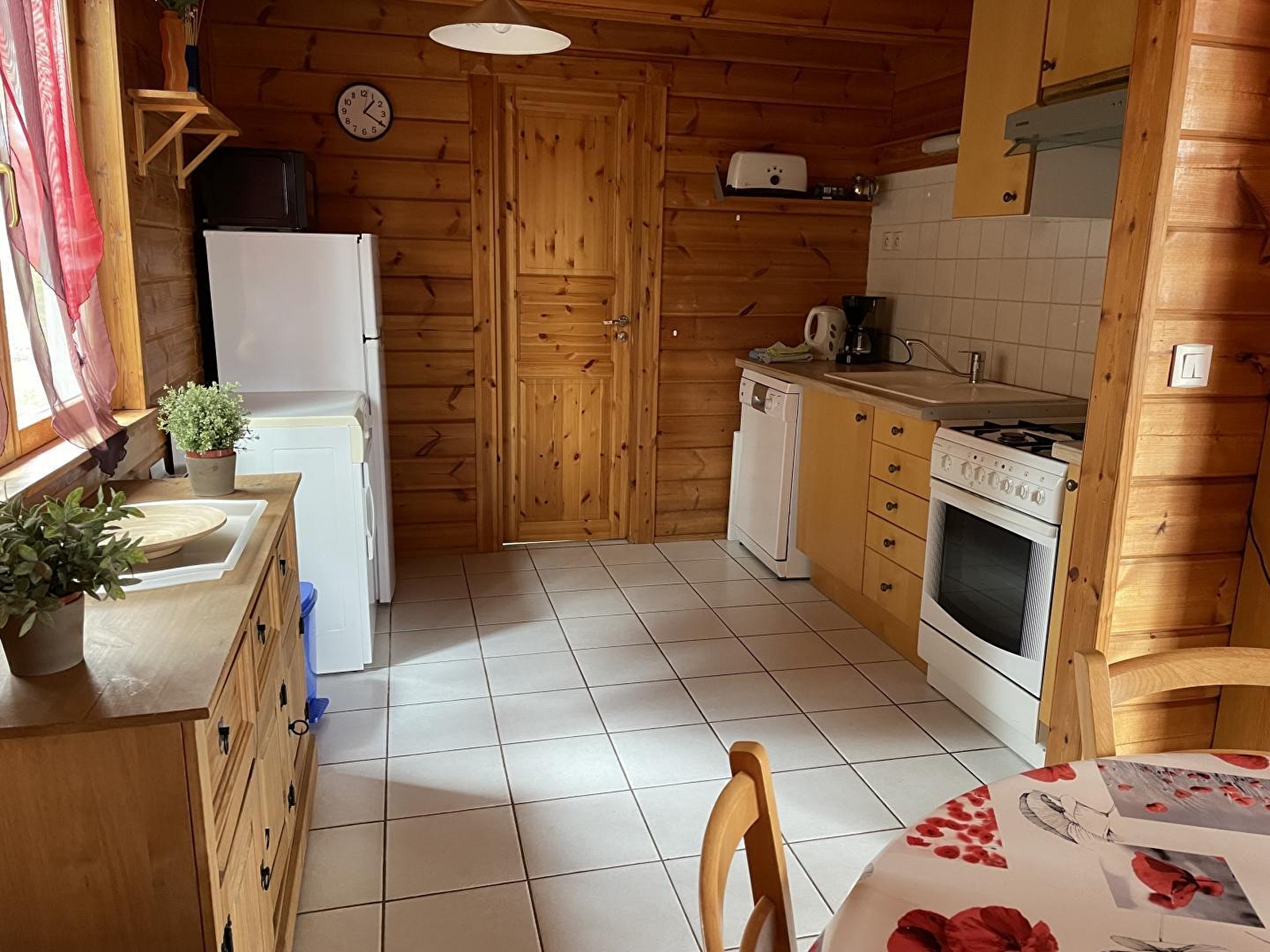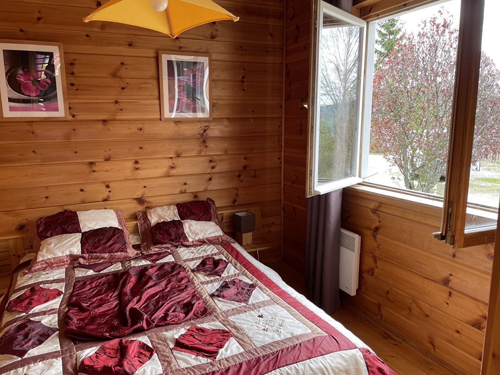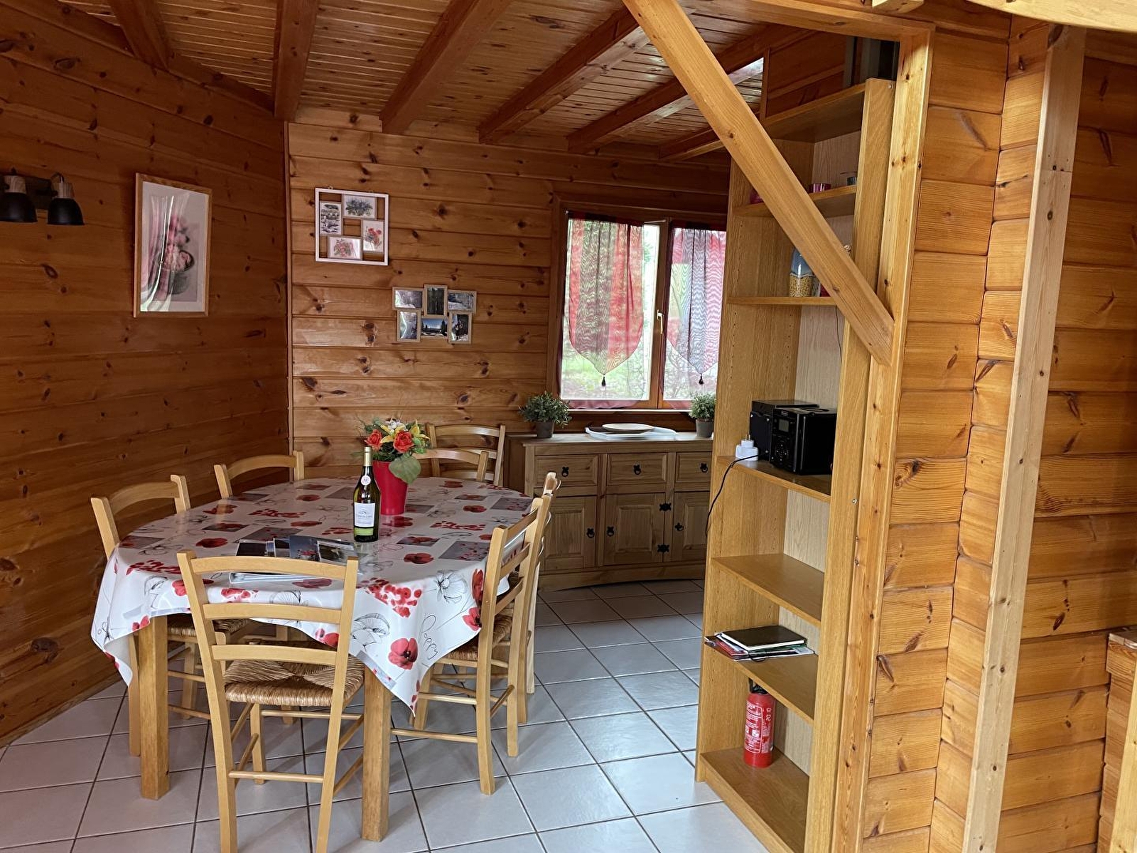 Dans un cadre naturel, chalet bois (MELEZE) entièrement neuf et indépendant, situé sur un terrain comportant 4 autres gîtes. Cuisine intégrée toute équipée (micro-ondes), salon-séjour (poêle à bois) avec de grandes baies vitrées ouvrant sur la terrasse, salle d'eau (douche hydrothérapie et sauna finlandais pour 4 pers), ch1 1 lit 2 pl, buanderie (sèche-linge). A l'étage : salon en mezzanine (canapé-lit 2 pl), ch2:1 lit 2 pl + 2 lits 1 pl superposés. Chauffage électrique et poêle à bois. Terrain attenant non clos, salon de jardin, barbecue. Option ménage à 60E. Piscine, tennis et terrain de jeux municipal à 100 m.
