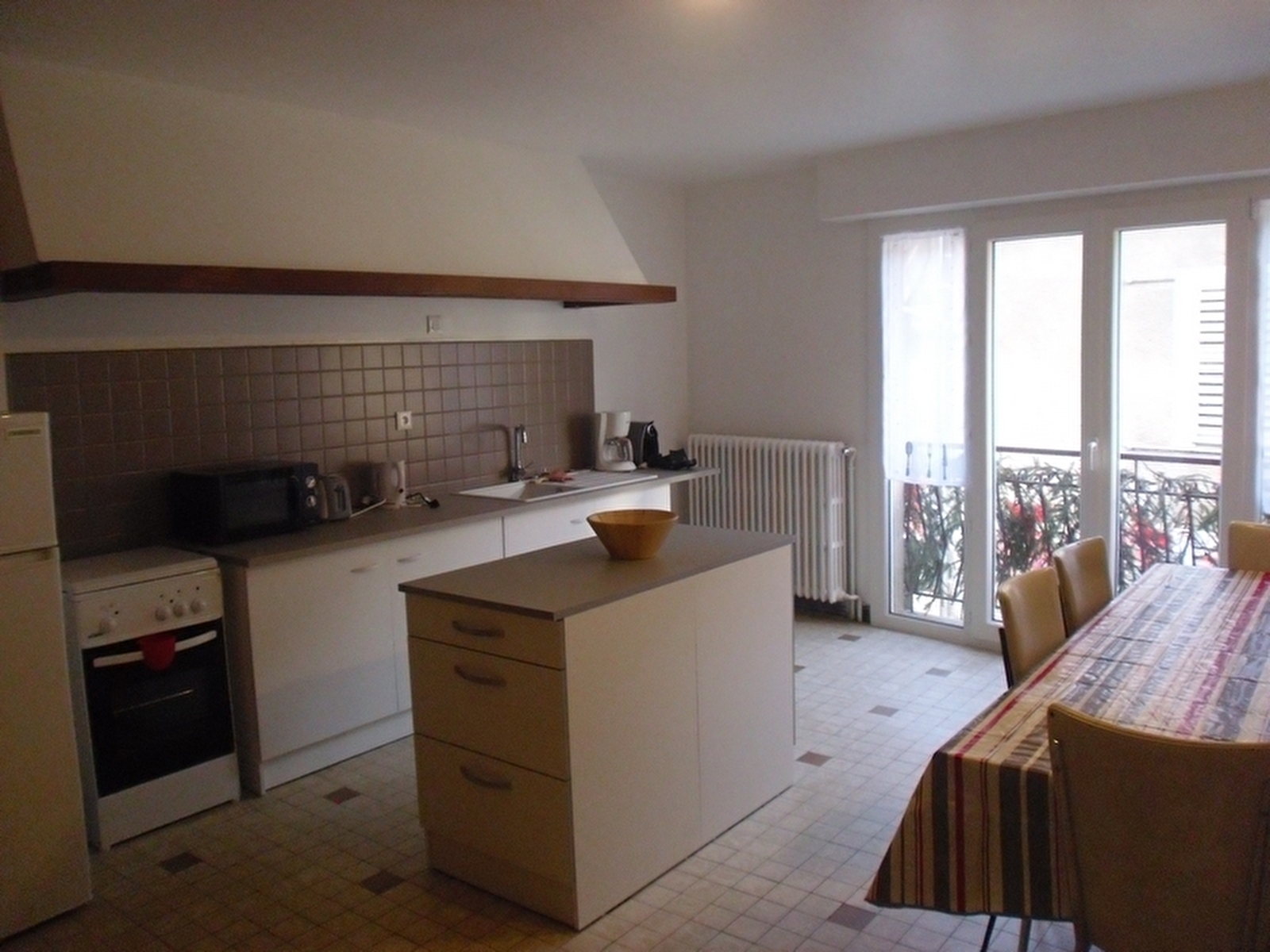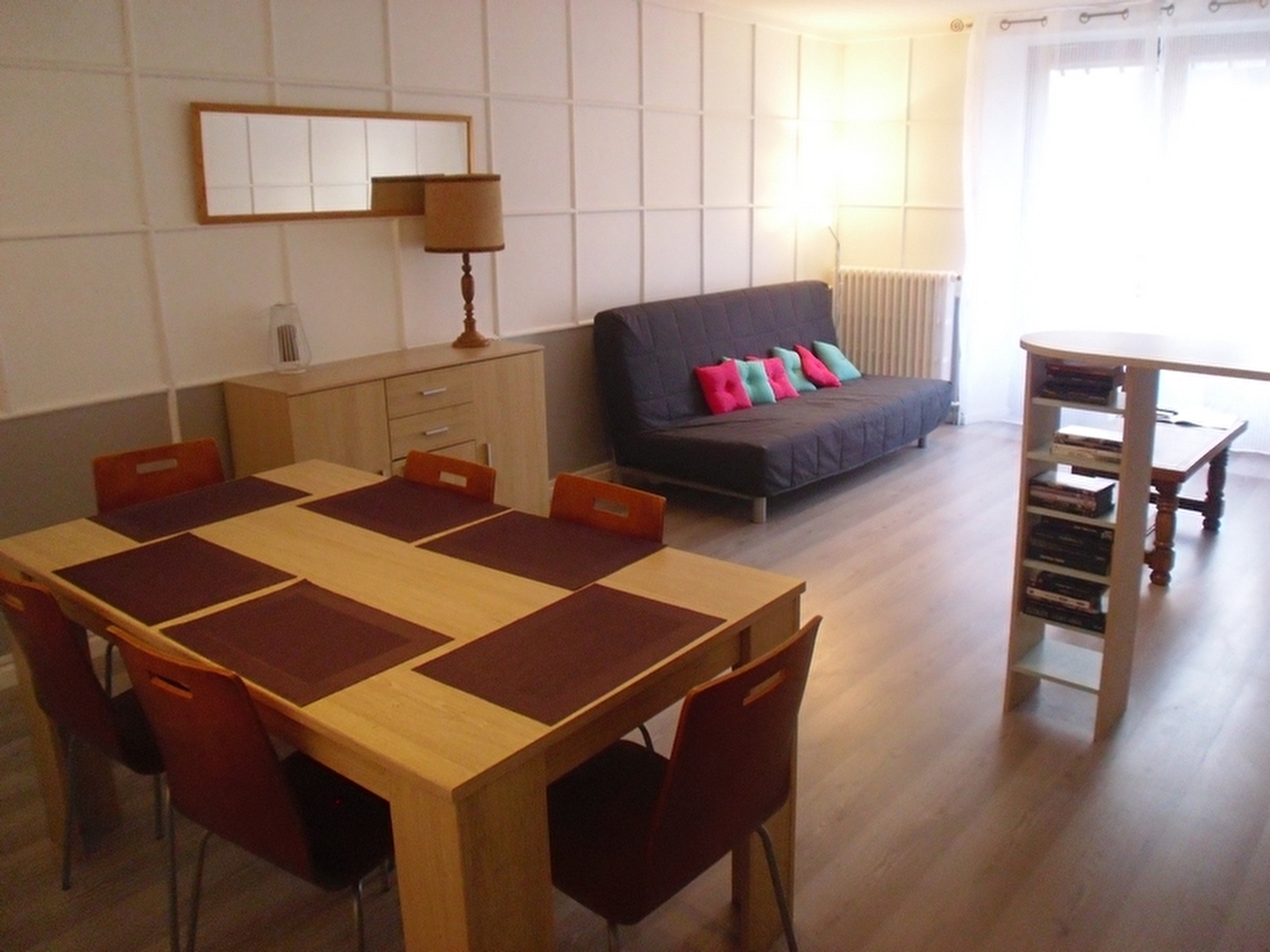 Maison de ville plain-pied 90 m², jardin, parking. Centre ville à 1 min à pied. 2 chambres (1 lit double et 2 lits simples), cuisine équipée, salon-salle à manger (canapé convertible 2 places), 1 salle d'eau, 1 WC (séparé). Lave-linge, lave-vaisselle, cafetière, nespresso, fer à repasser, sèche-cheveux, barbecue, TV, lecteur DVD. Internet, wifi. Animaux acceptés après accord propriétaire. Non fumeur.